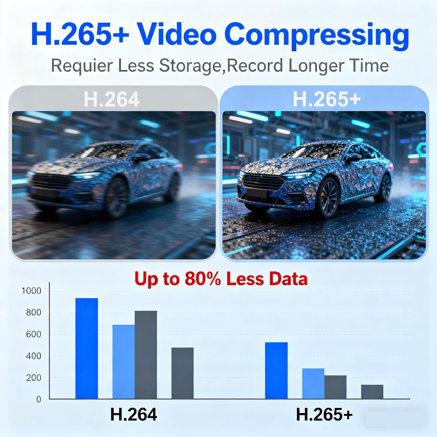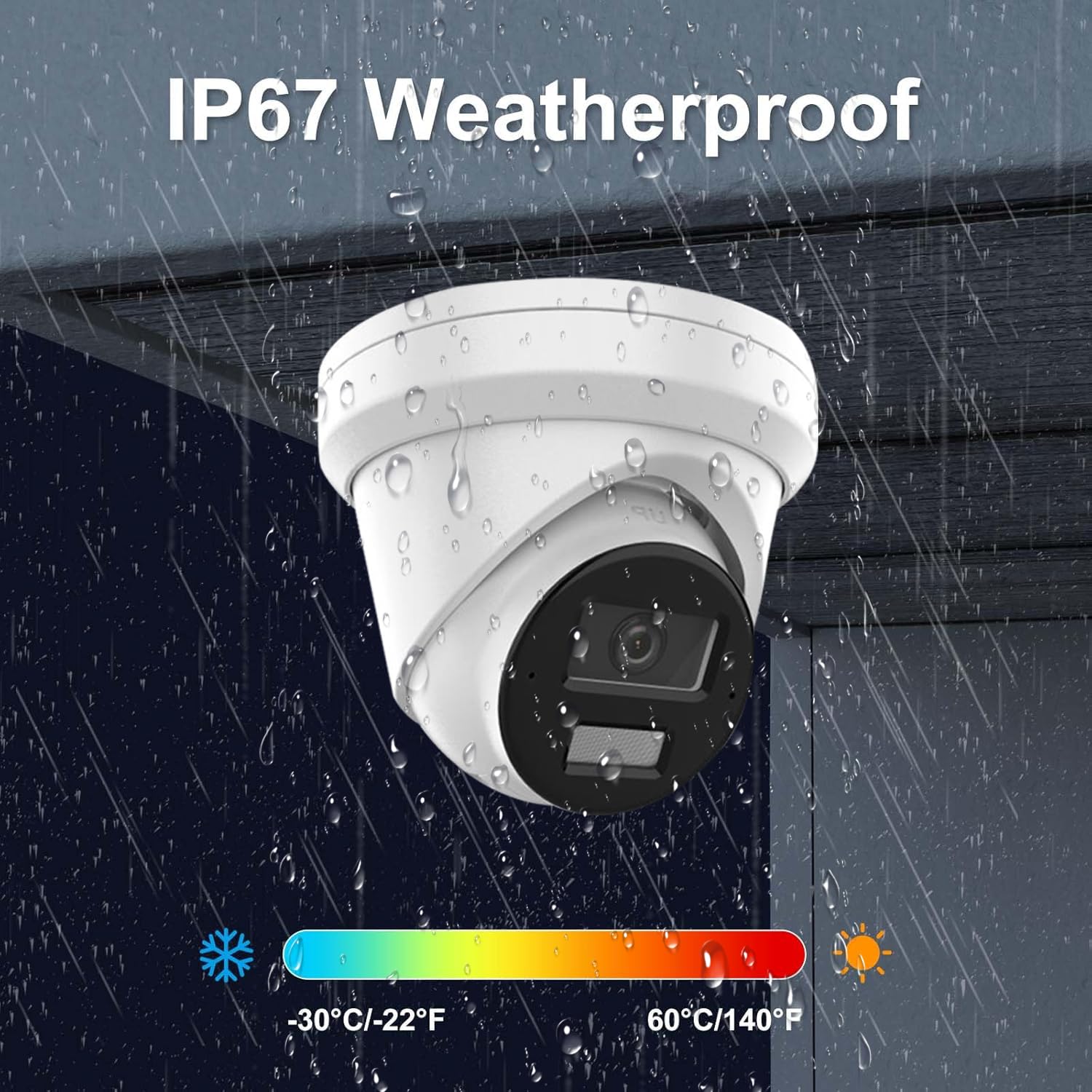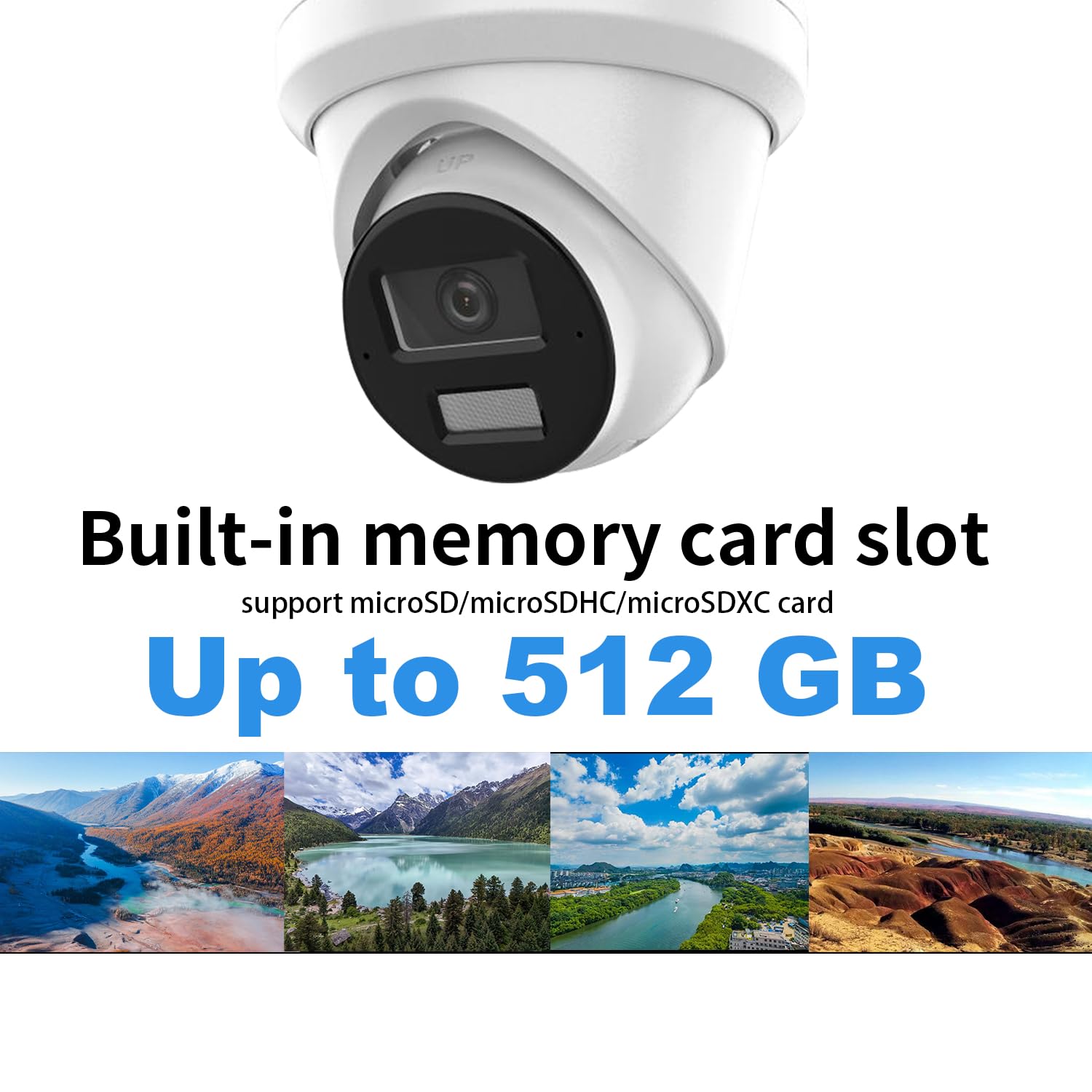 Weatherproof Design & Efficient Storage: Boasts an IP67 rating for protection against dust and water immersion. Advanced H.265+ compression technology significantly reduces bandwidth and storage requirements without compromising video quality. Built-in memory card slot, support microSD/microSDHC/microSDXC card, up to 512 GB.