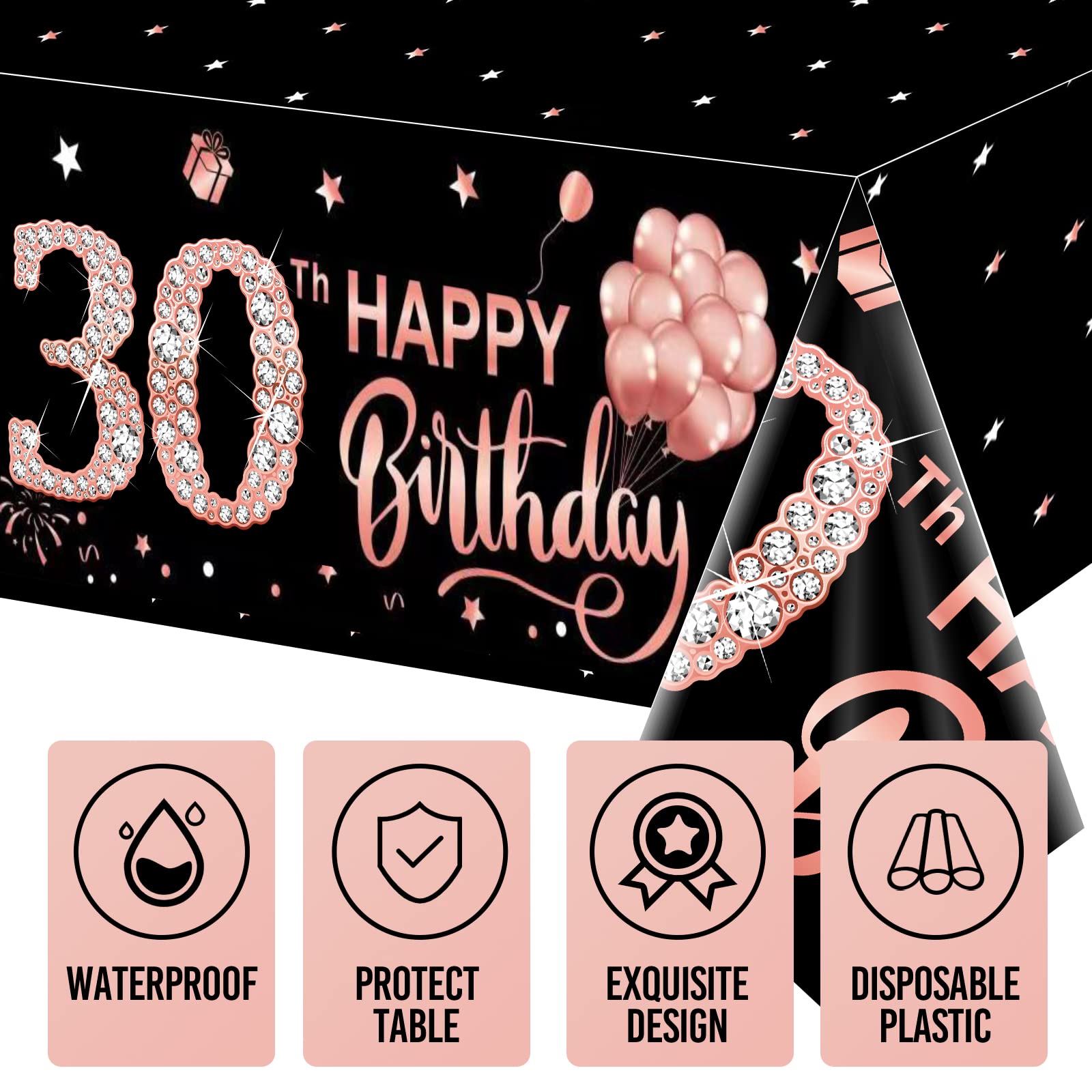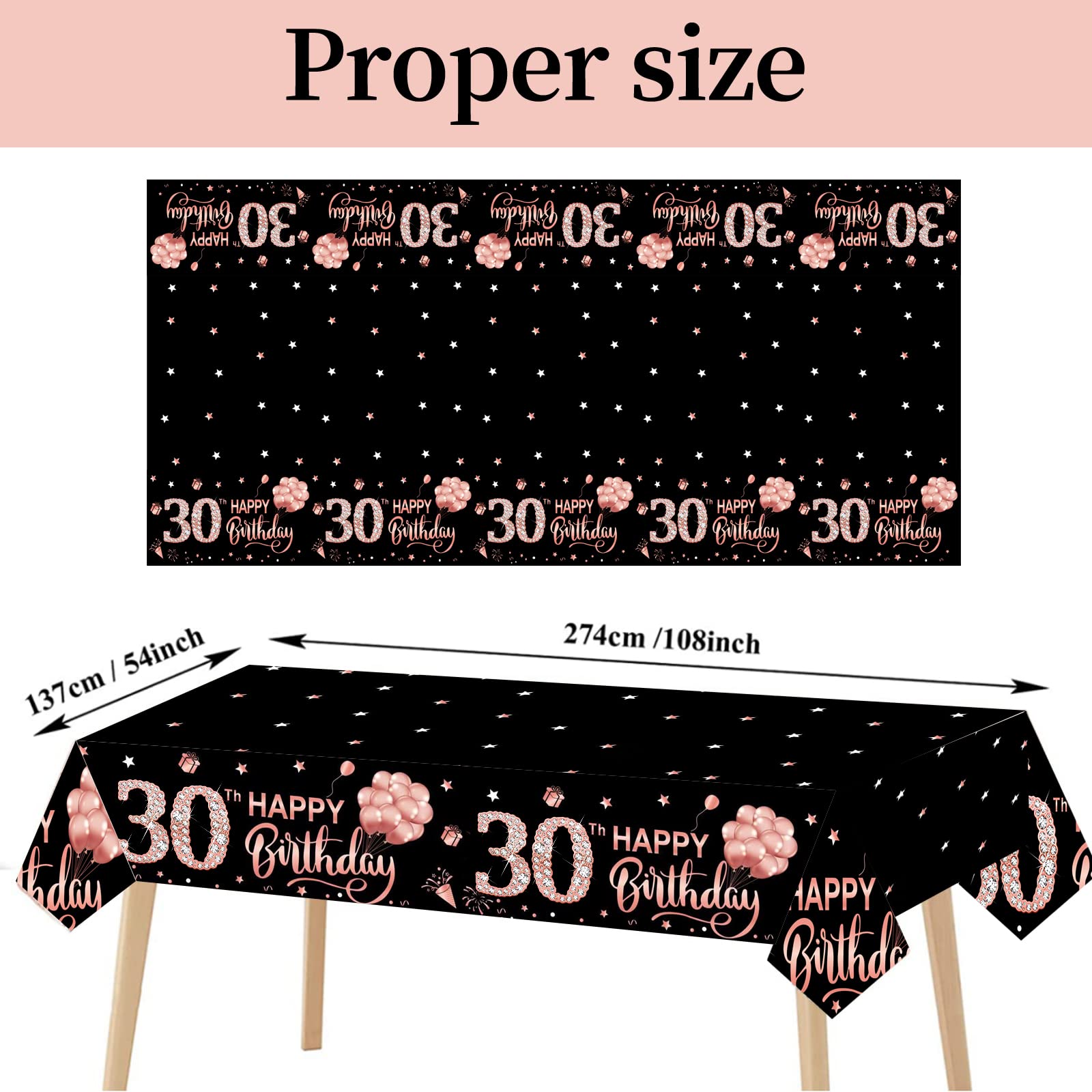 You Will Get: 3Pack rose gold 30 birthday tablecloth decorations for women. 54 x 108 inches, suitable for covering most rectangular desktops. Note: Please measure the table size in advance