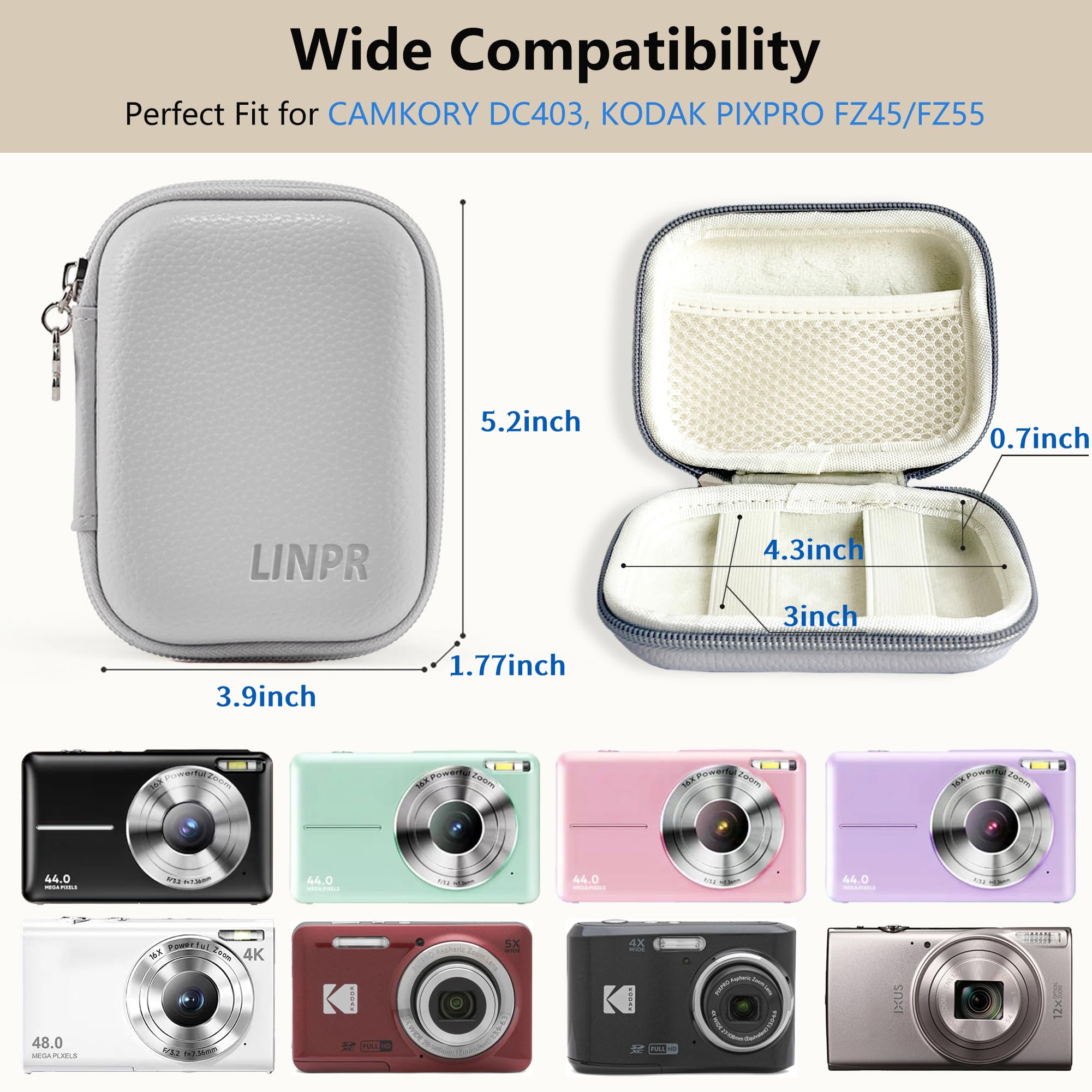 Perfect Fit: This digital camera bag has wide compatibility with KODAK PIXPRO FZ45/FZ55, CAMKORY, Lecran, FJFJOPK, Lecnippy, Canon IXUS digital cameras. Compact and portable, it fits easily into pockets and backpacks without taking up much space. External dimensions: 5.2x3.9x1.77 inches