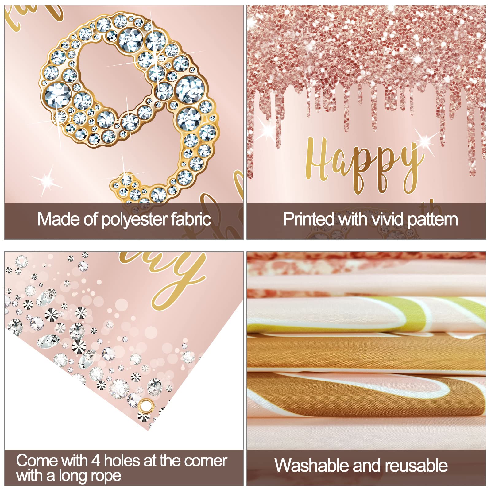 [You will get] - Pink rose gold 9th birthday door banner decorations, 72.8 X 35.4 inches, enough to decorate your birthday party, make your birthday party vibrant and fun.