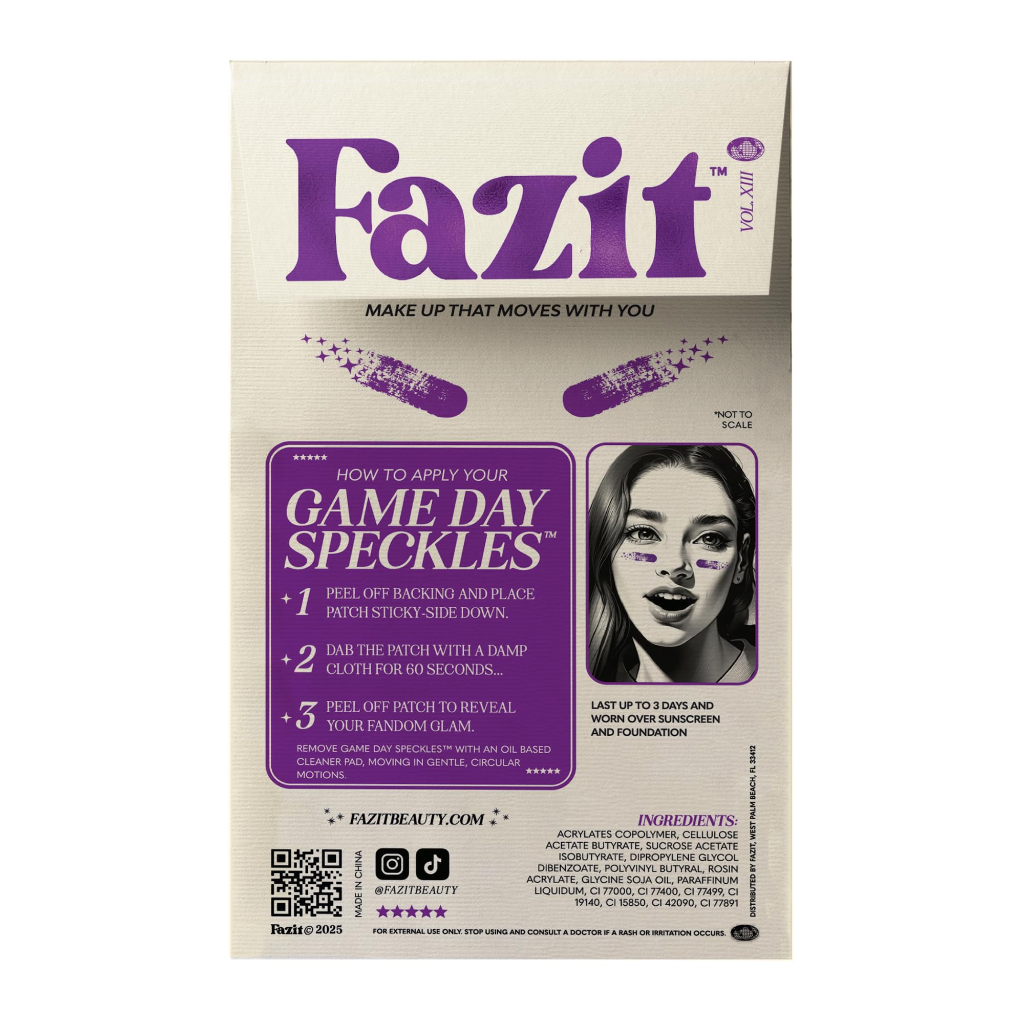 EASY APPLICATION - Applying our water resistant purple game day speckle patches is a breeze! First, peel off the backing and place the sticky patch on your skin. Then, wet a towel and dab the patch for 60 seconds. Finally, peel off the patch to reveal your glamorous new speckles. It's that simple – no mess, no fuss, just beautiful, natural-looking speckles in minutes. Perfect for anyone looking to add a touch of charm to their look with minimal effort!