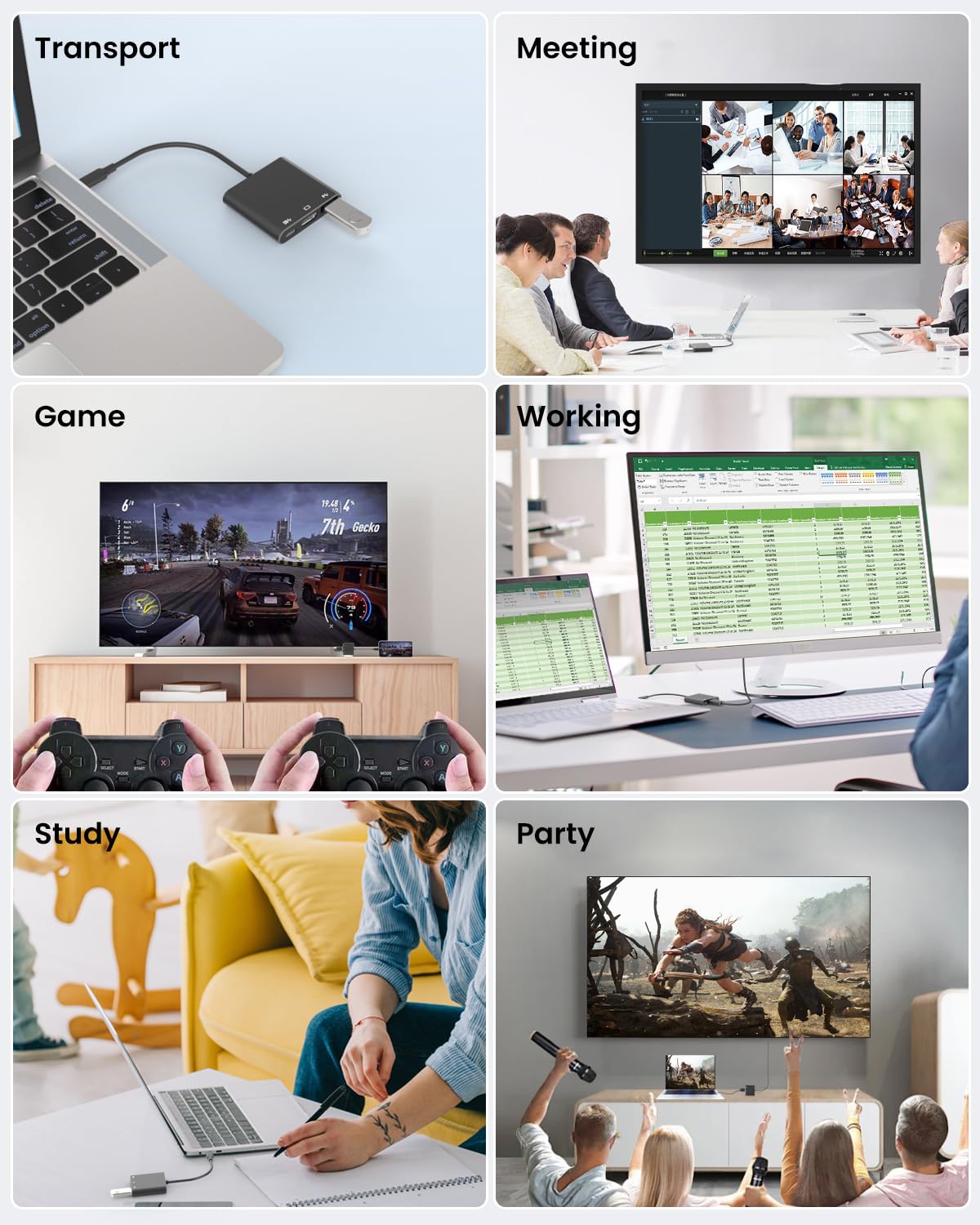 Crystal-Clear 4K@60Hz HDTV Output: Enjoy crystal-clear 4K Ultra HD resolution (3840x2160@60Hz) on your TV, monitor, or projector. This adapter delivers smooth, vibrant visuals, compatible with most HDTV-enabled devices for a superior viewing experience. Please note: The video output will be 4K only if your device supports 4K resolution, please make sure to use an HDTV 2.0 or better cable