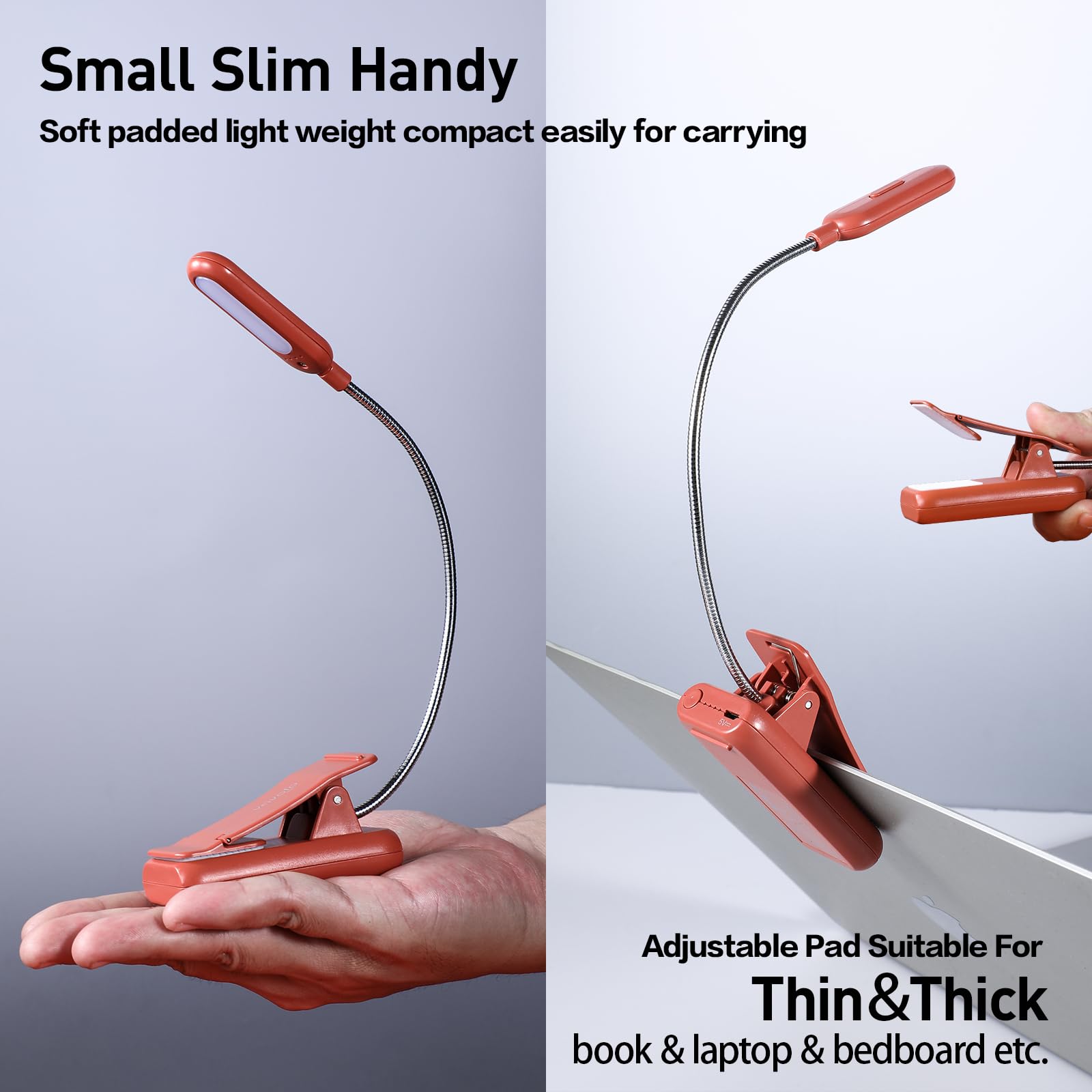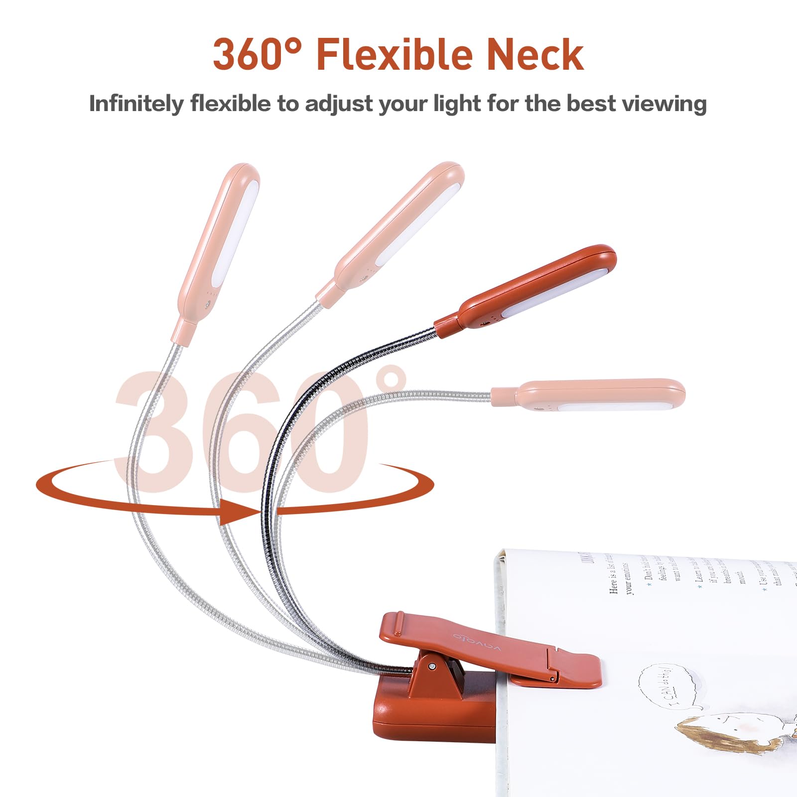 【360°Flexible Goose Neck & Non-slip Clip Design】- The Vavofo's reading light has the 360 degree adjustable neck with multi use non-slip clip which allows you to position the light exactly where you need it, creating the perfect private reading space for you while reading in bed, in college dorm, or on a plane, train, or bus. It can also be placed on the tabletop, work surface, etc. The lightweight, portable, & travel-friendly only 2.59 oz weight