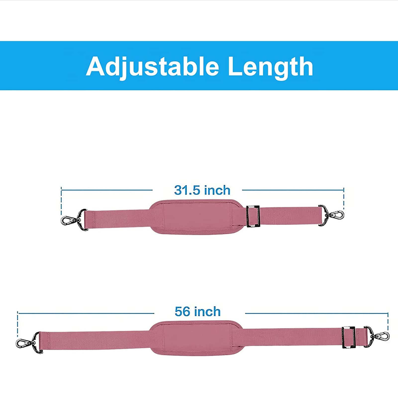 The comfort padded shoulder strap can be adjusted between 31.5 inch to 56 inch (80cm to 142 cm) in length, 1.5 inch in width. The easy adjustment in length allows for the perfect fit.