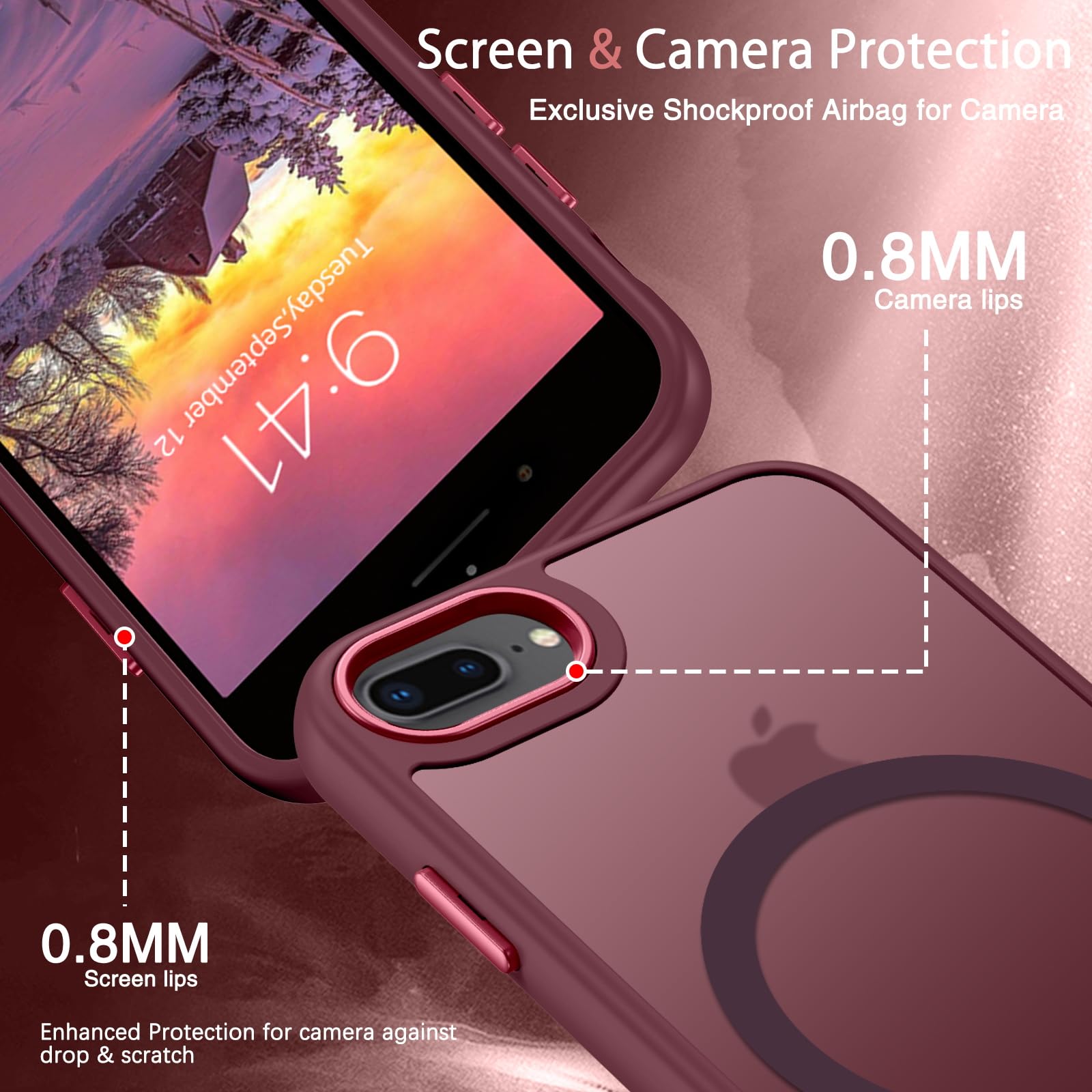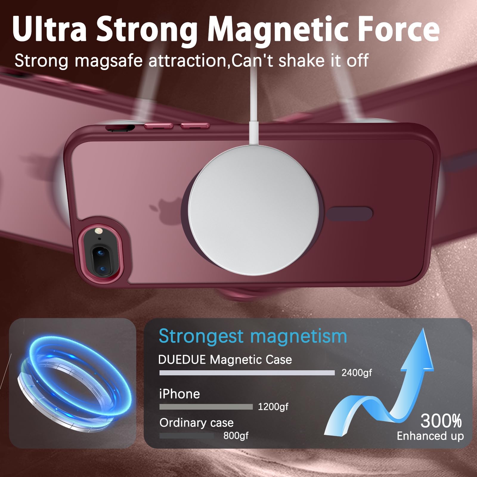 Compatible with Magsafe: Particularly designed for iPhone 7 plus/iPhone 8 plus, the phone case is compatible with Magsafe chargers and other Qi Wireless chargers without signal influence. Built-in strong magnet, the iPhone 7 Plus/8 Plus phone case will not fall off no matter how it rotates with super adsorption capacity. The perfectly aligned magnetic attraction makes wireless charging faster and more stable