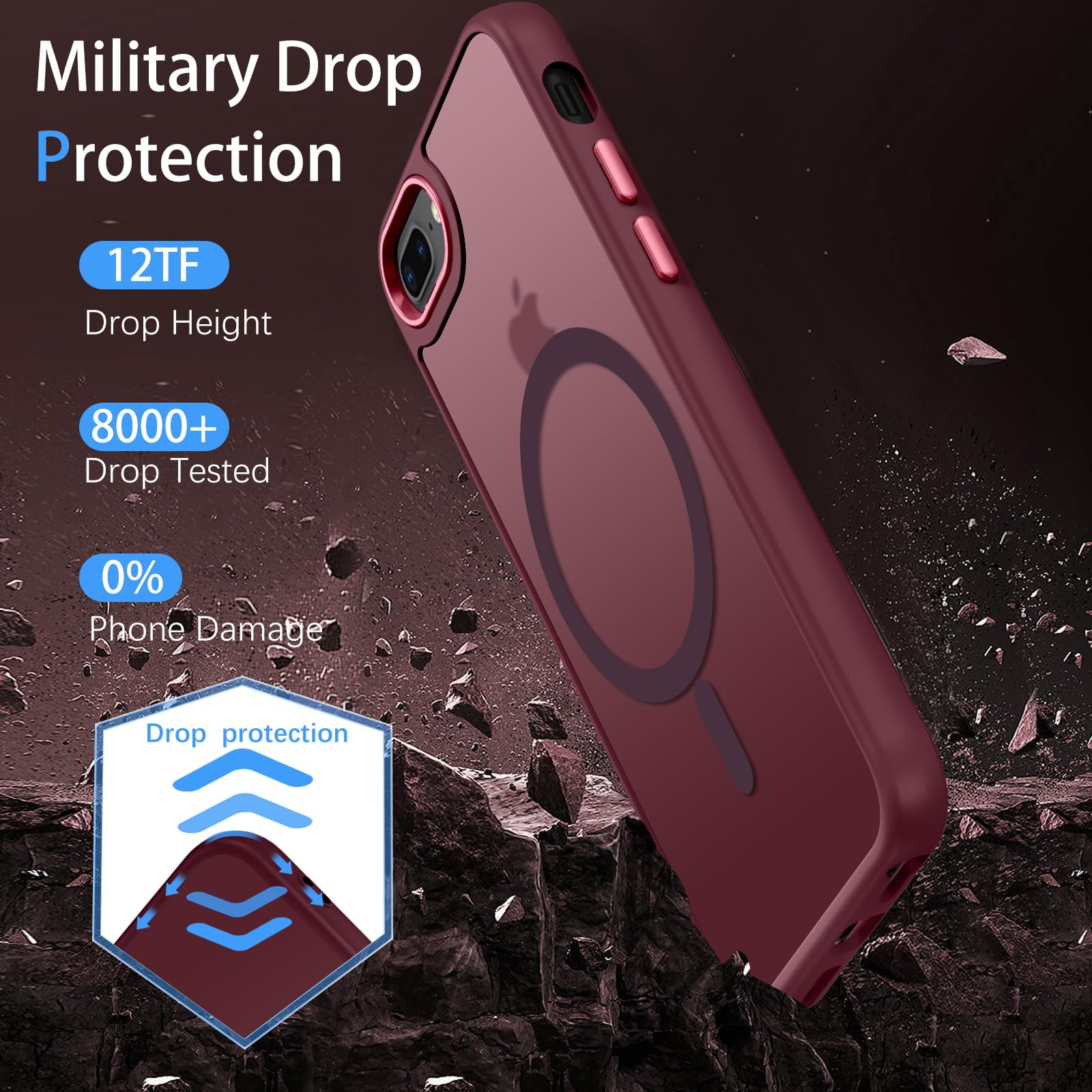 iPhone 7 Plus/8 Plus Case Magnetic: Magnetic shockproof phone case compatible with iPhone 7 plus/8 plus. Please confirm your phone model before purchasing(without screen protector)