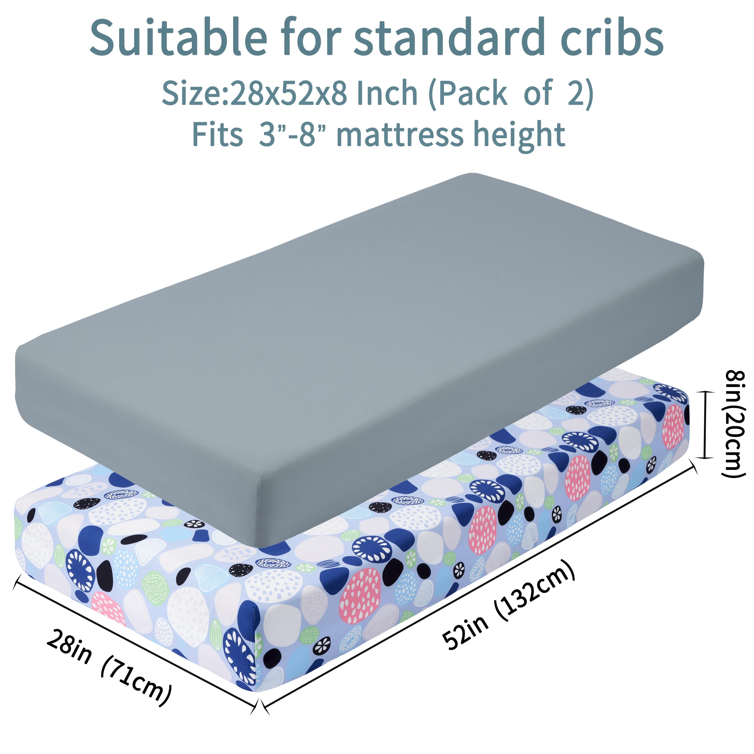 PERFECT FIT: The crib sheet measures 52" X 28" X 8". The elastic bandage wraps around to ensure that our crib mattress sheets fit your crib mattress snugly, not loose, but flat, giving your baby a comfortable bedding.