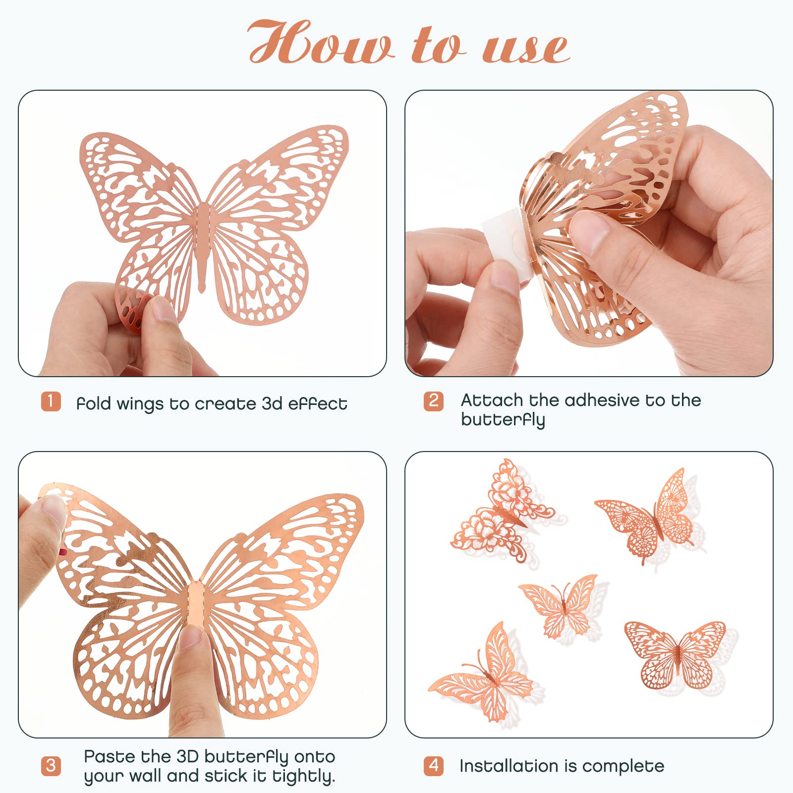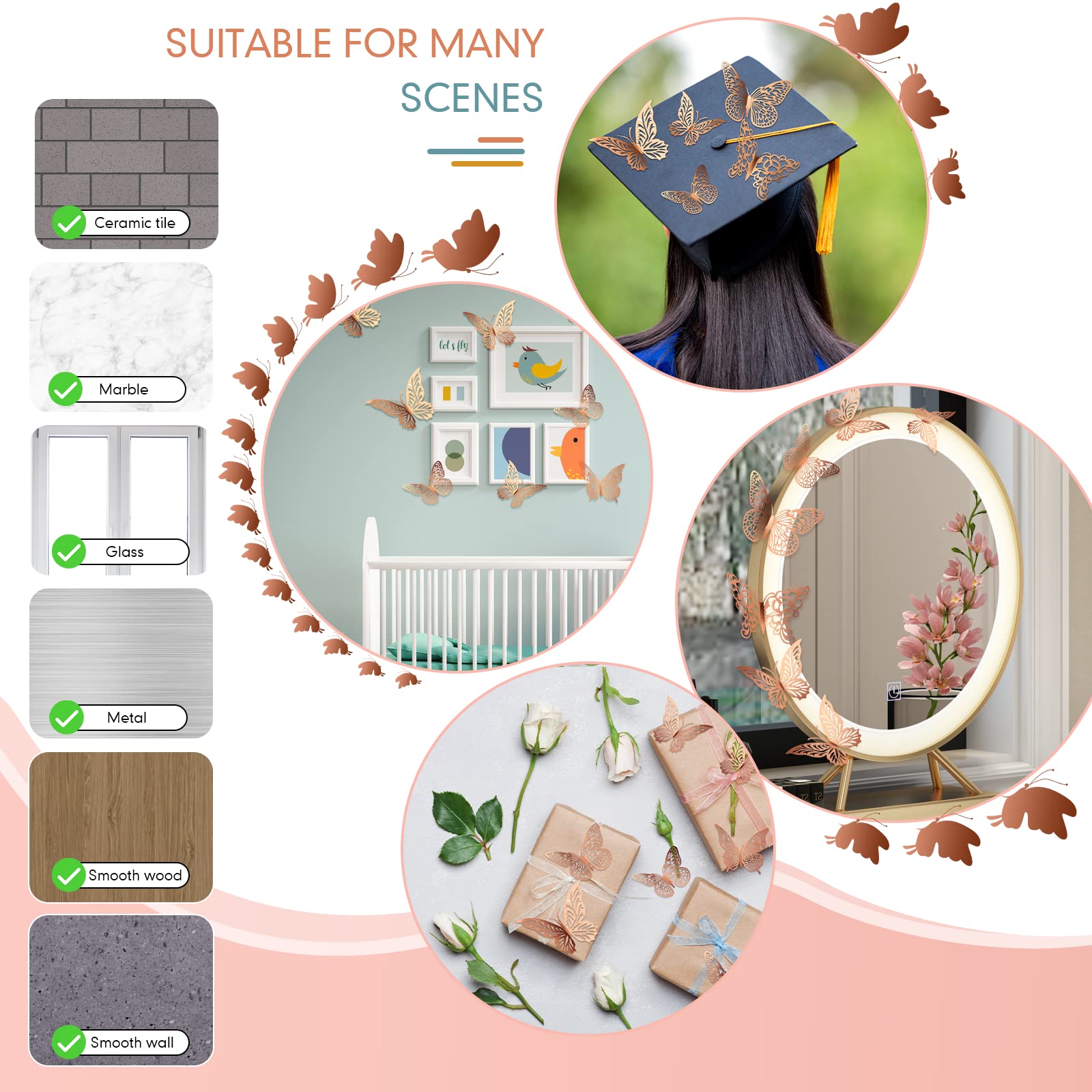 Easy to Use - Our butterfly stickers come with 48pcs strong stickiness and removable adhesive. High-quality glue and will not easily fall off the wall. Moreover, the glue is removable and will not leave marks or damage the wall.