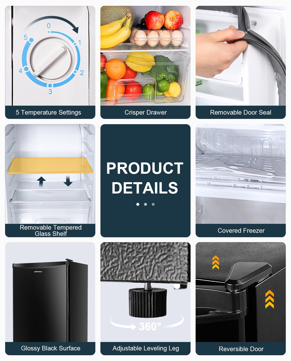 Crisper Drawer & Removable Shelves: Features a crisper drawer to keep your greens and fruits fresh and juicy. The small fridge storage space is adjustable to practical uses with removable shelves. Arrange these shelves how you see fit and you’d be amazed how much the small fridge can stores