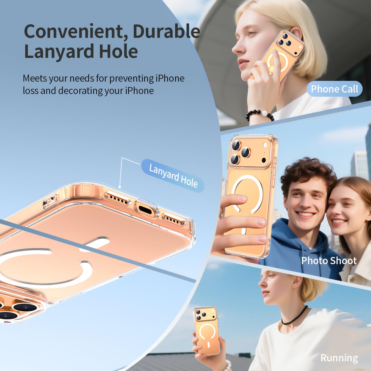 Crystal Clear &Never-Yellowing: This for iPhone 17 Pro Max Clear case, crafted from oxidation-resistant material, effectively repels fingerprints and sweat, resistant to yellowing. Shows the original color of your New Phone