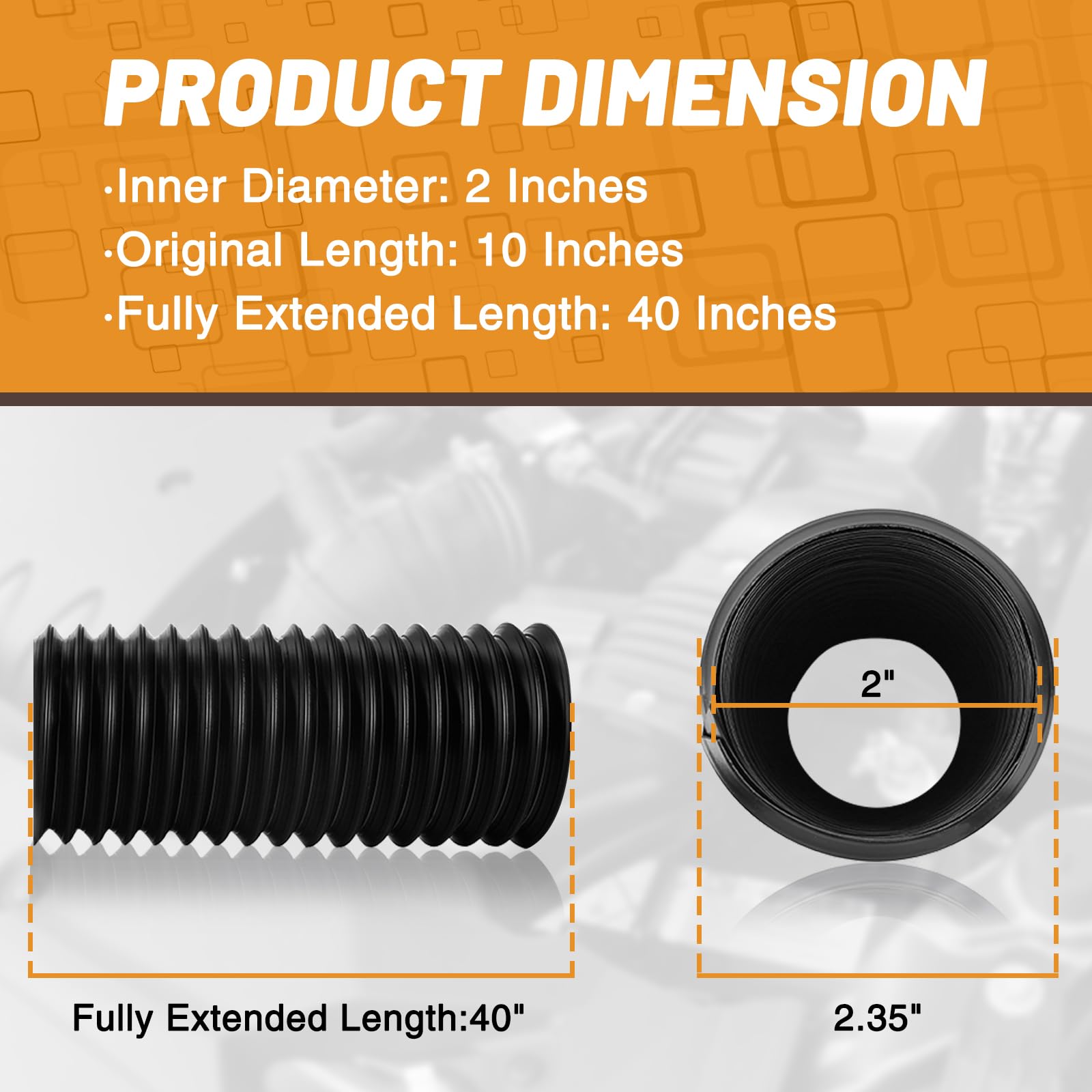 ➤ Application: Universal fits for most vehicles with intake, tube and hose size 2"(51mm). Please check your original duct size before ordering