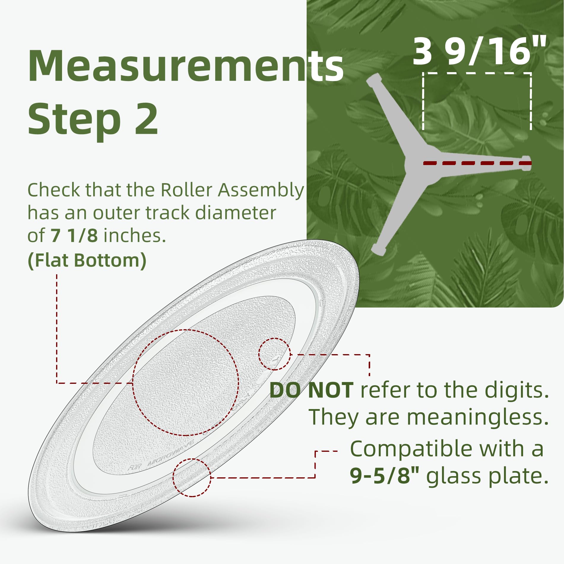 This 9.6 IN Microwave Glass Turntable is a flat-bottom glass plate, compatible with a roller assembly of 3 9/16-inch radius. (The measurement is taken from the outermost edge of the roller to the center of the roller assembly)