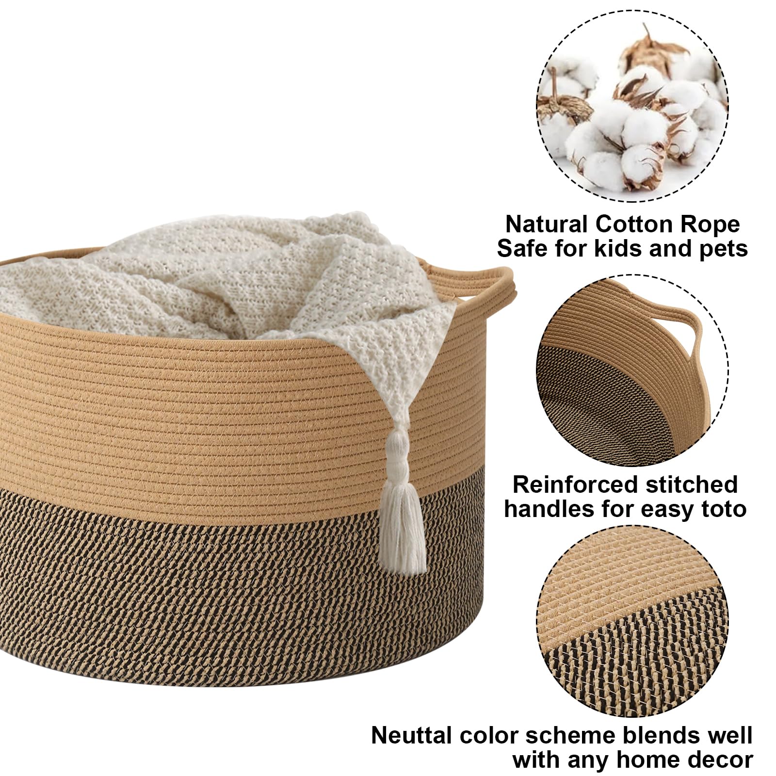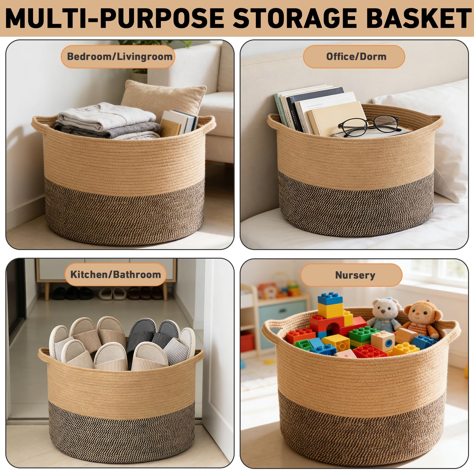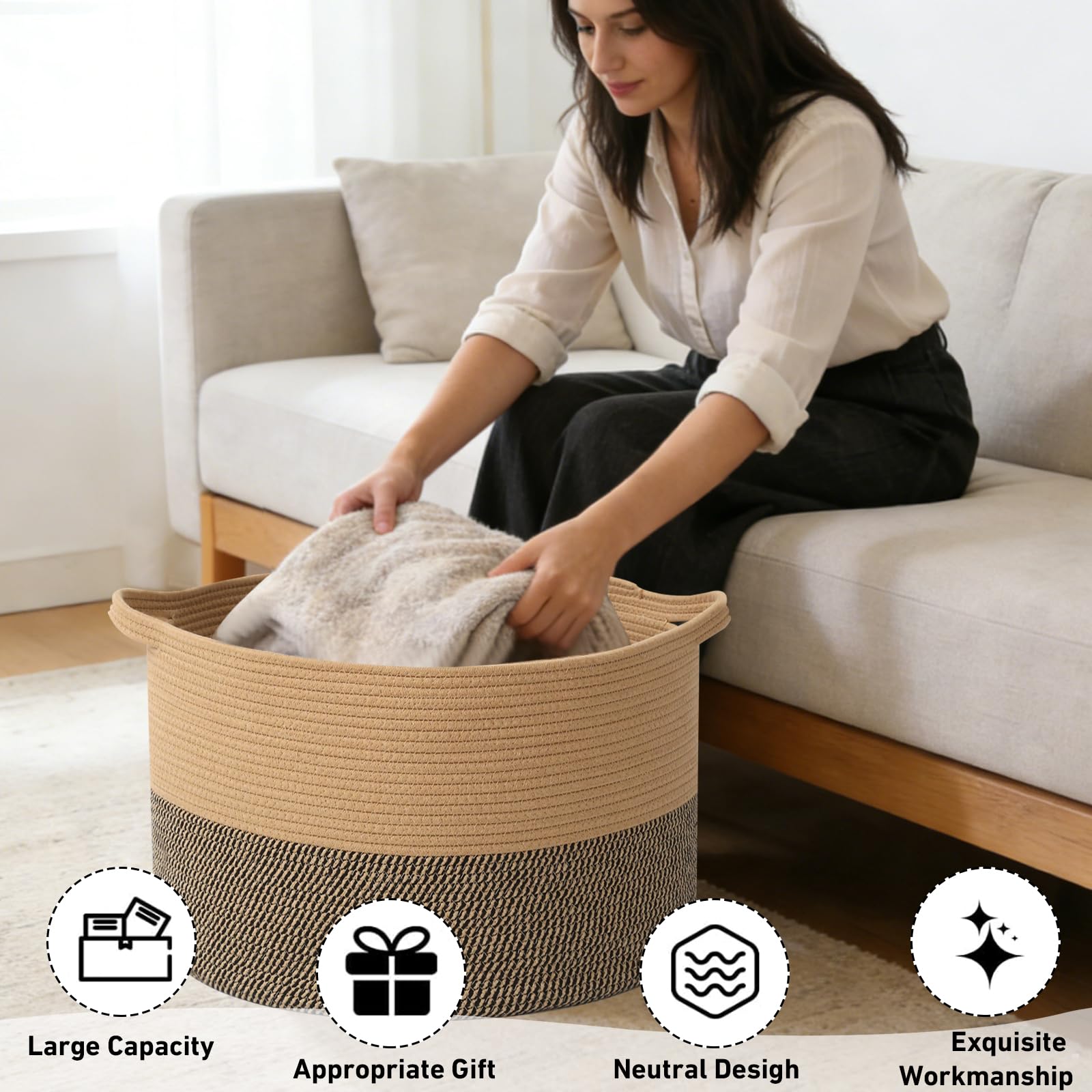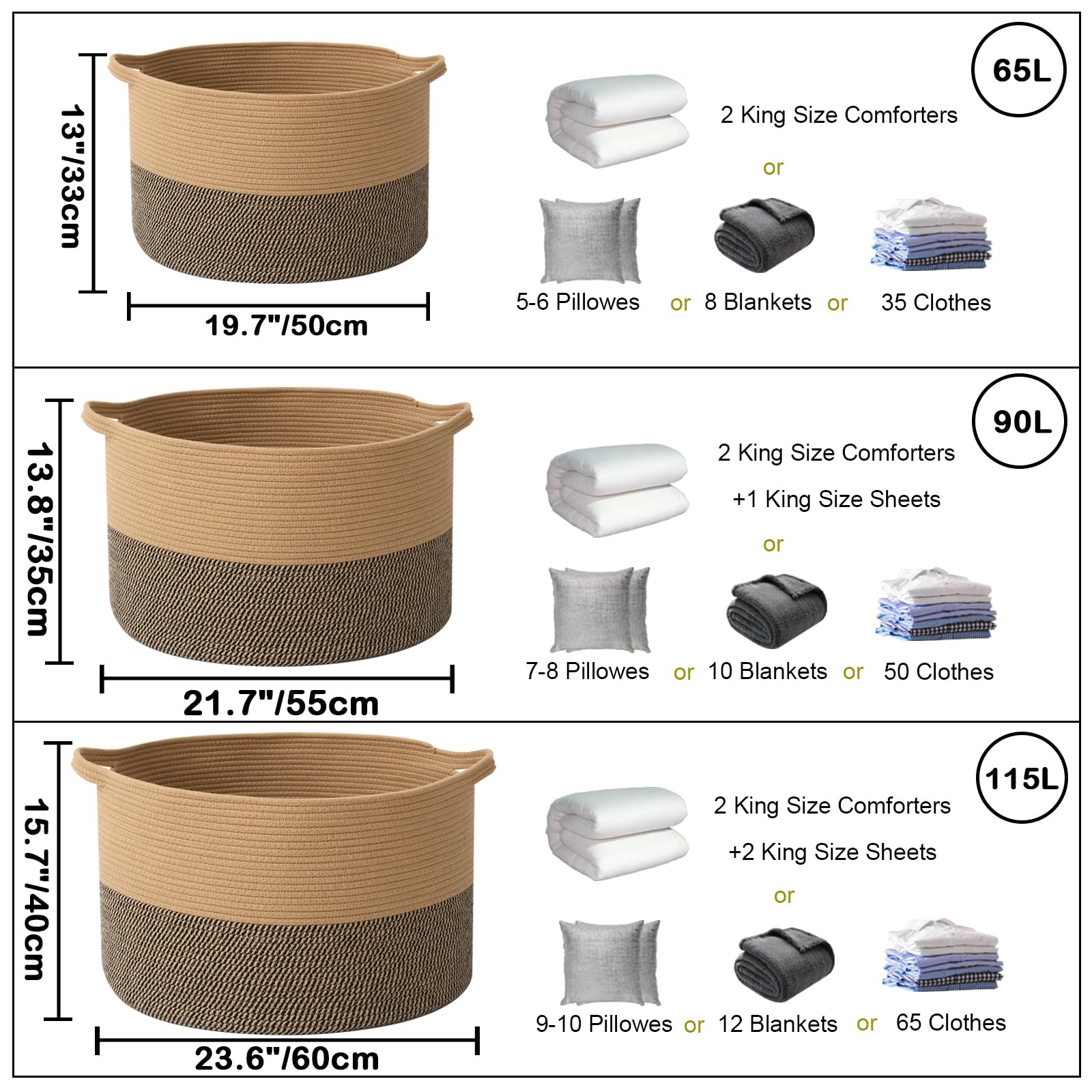 【90L Extra Large Capacity】This 21.7"L x 21.7"W x 13.8"H basket is perfect for storing throw blankets, pillow, cushions, clothes,towels,toys and stuffed animals.It can also add a nice style to your living room, bedroom, laundry room, nursery or any room