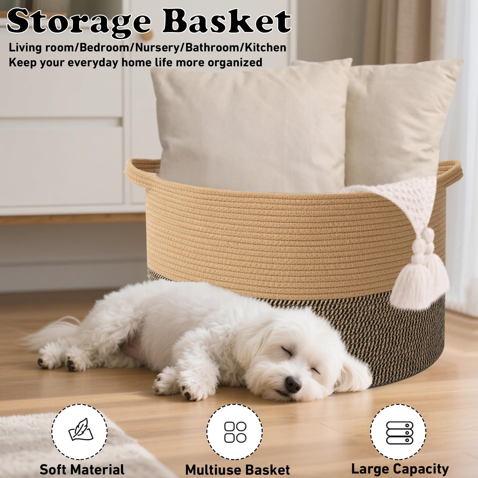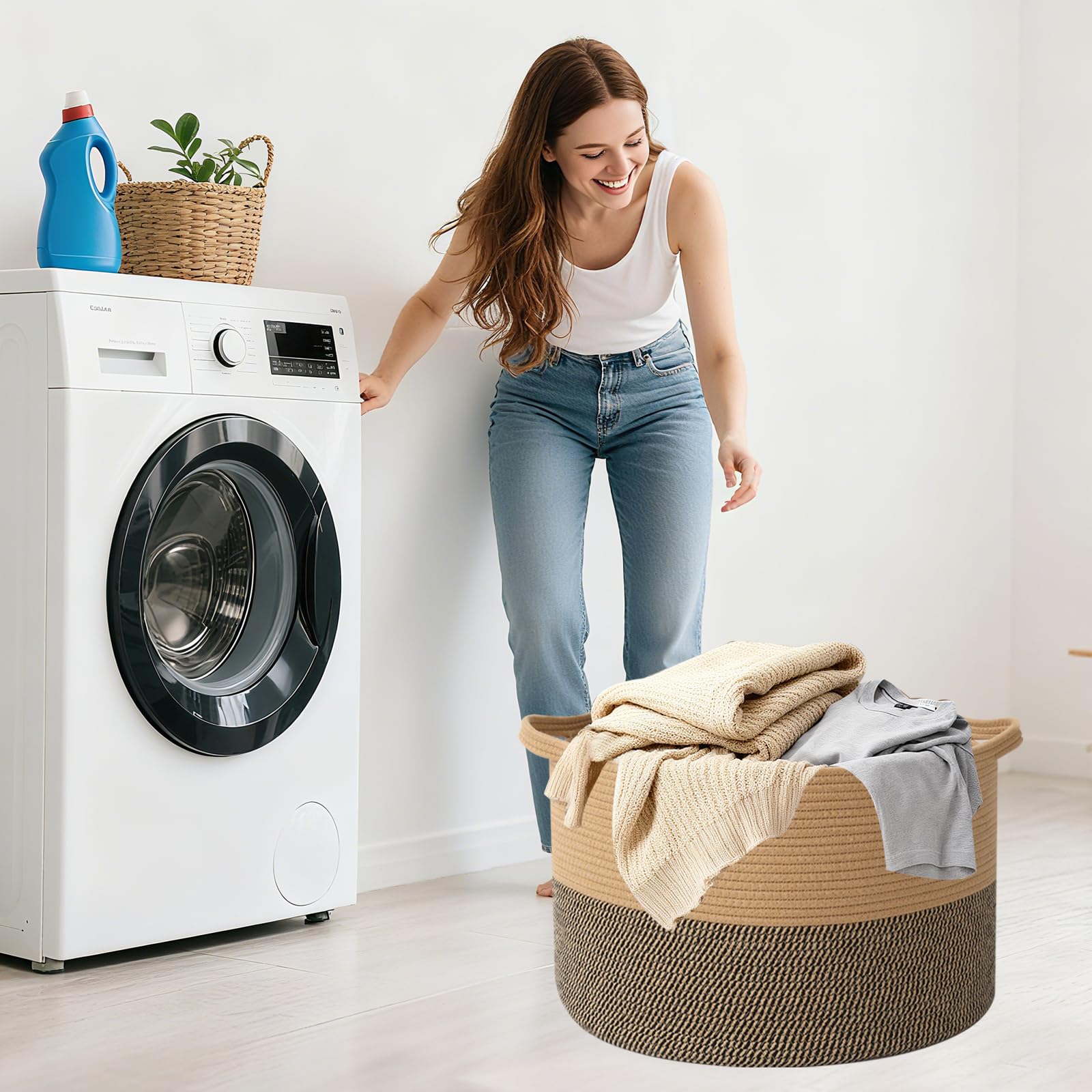 【High-Quality Craftsmanship Design】Made with soft, durable cotton rope. Slow-woven for even texture and long-lasting durability. The two built-in handles are sturdy.Strong handles for easy carrying or move
