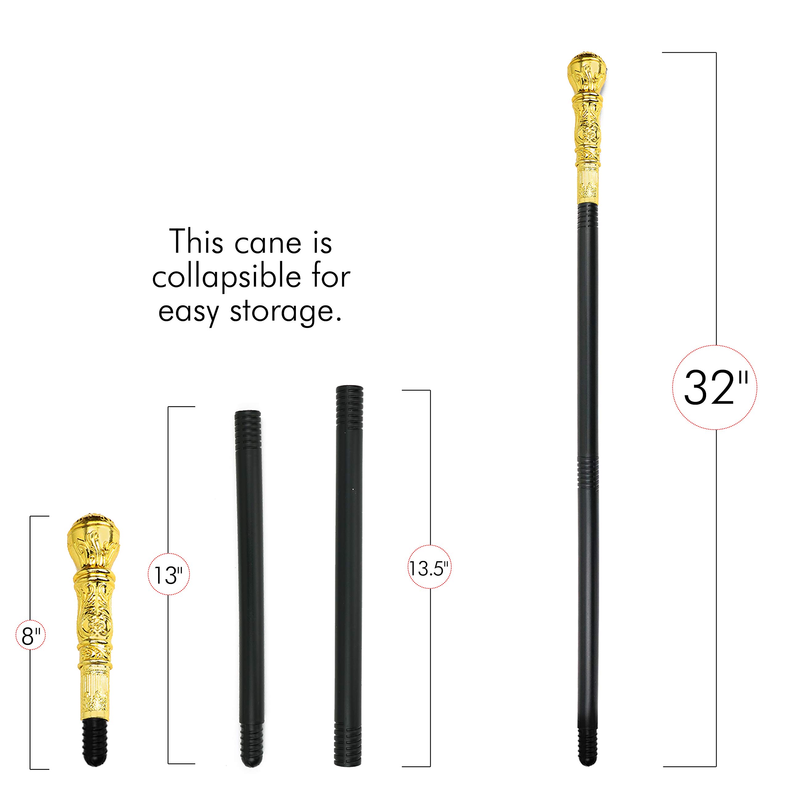 This adjustable cane measures 32" and can be shortened to 20" long for a toddler or a scepter.