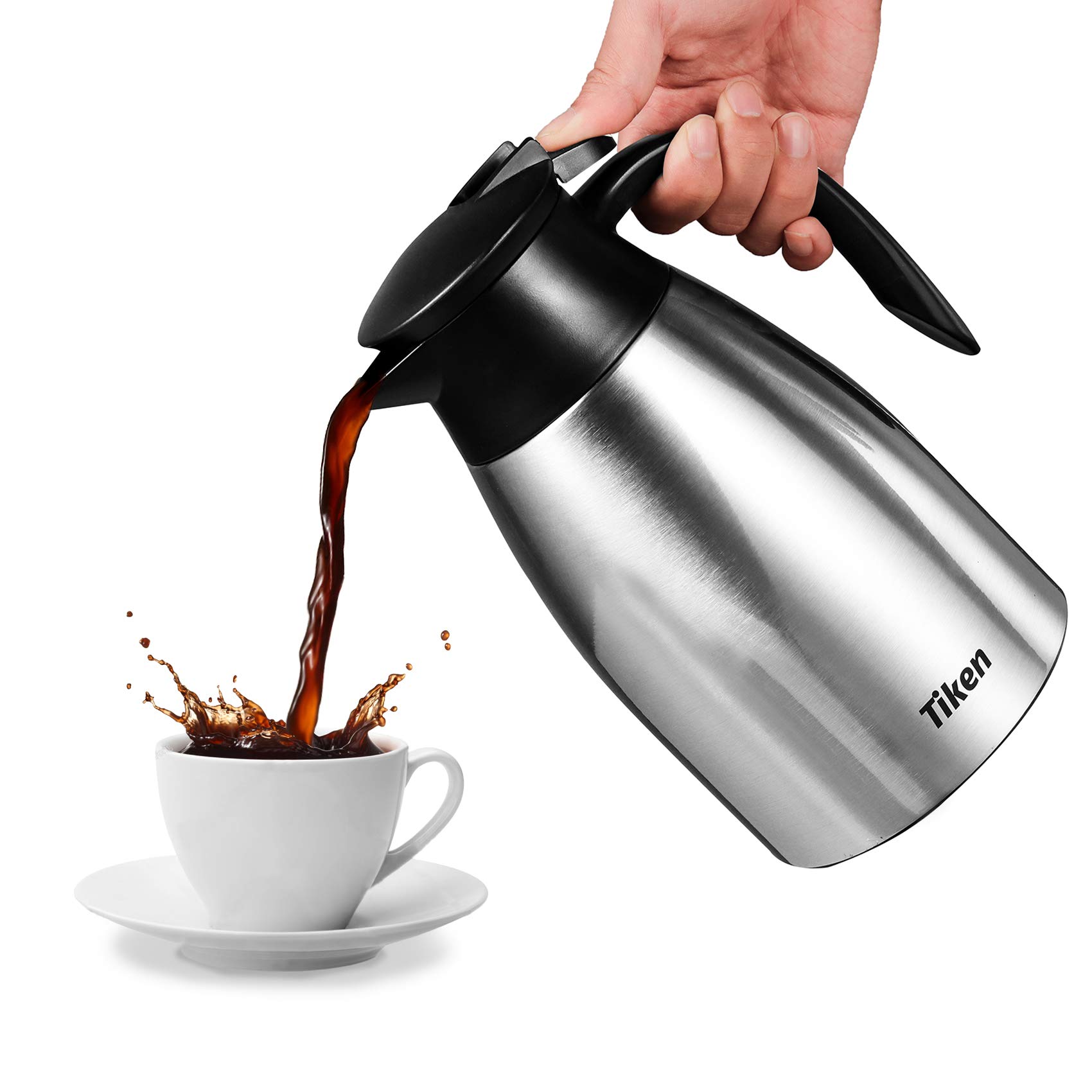 Our thermal coffee carafe uses a Press-down opening/closing mechanism. Pouring easily with push button ease, making one-handed pouring of the carafe simple.