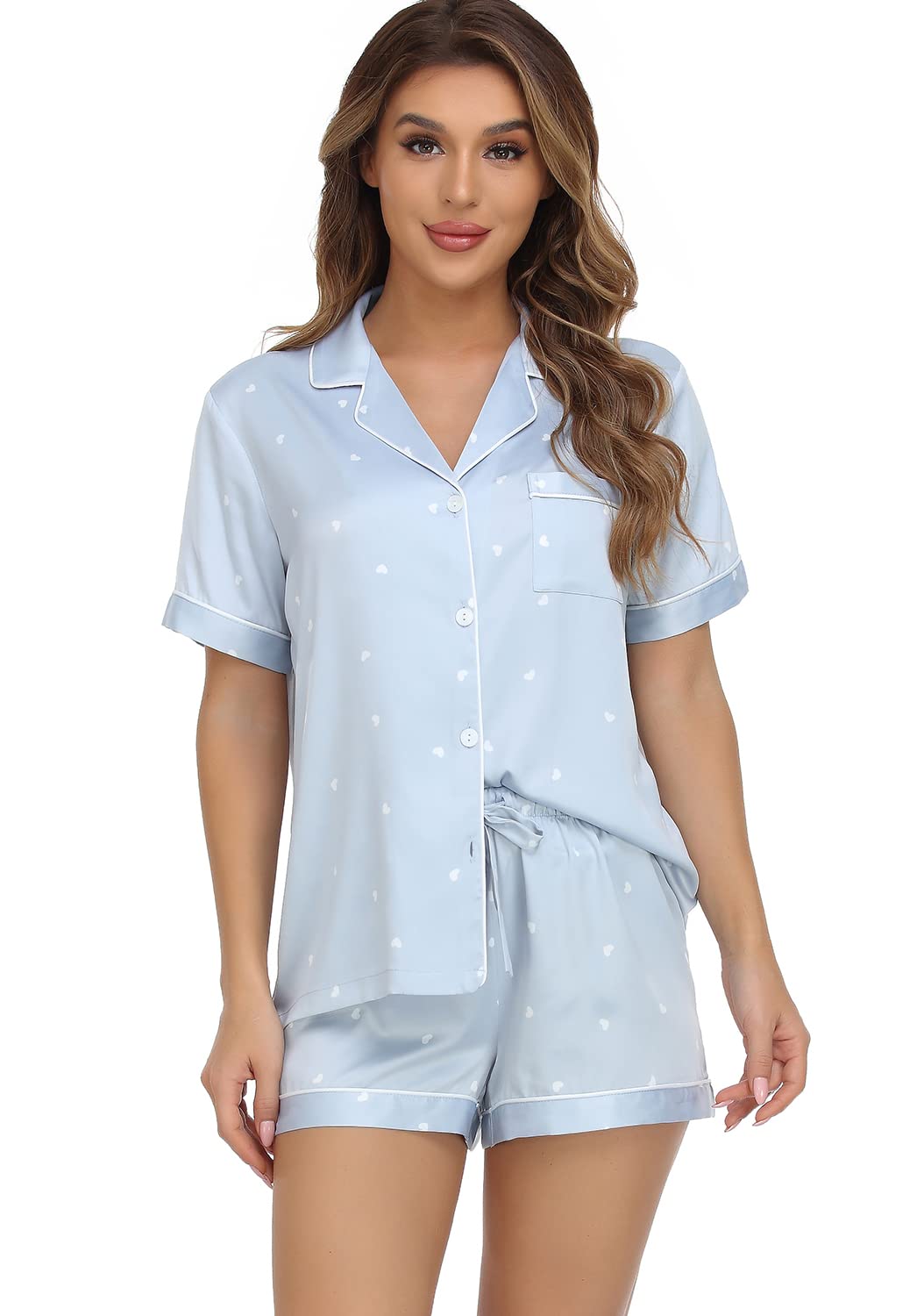 COMFORTABLE FABRIC: Made of high quality silk-like satin fabric, this pajama set is soft and lightweight, perfect for sleeping, lounging, or daily casual wear.