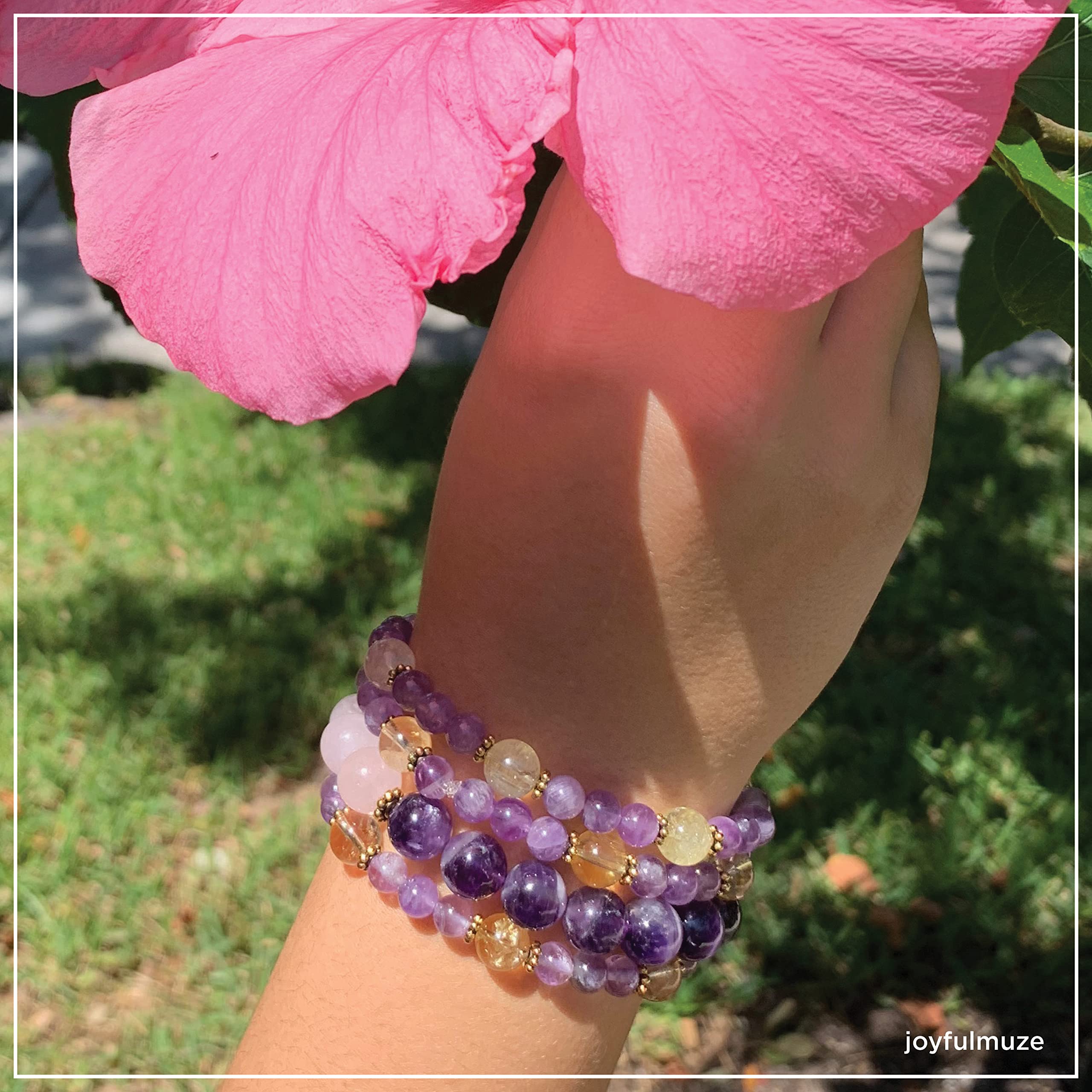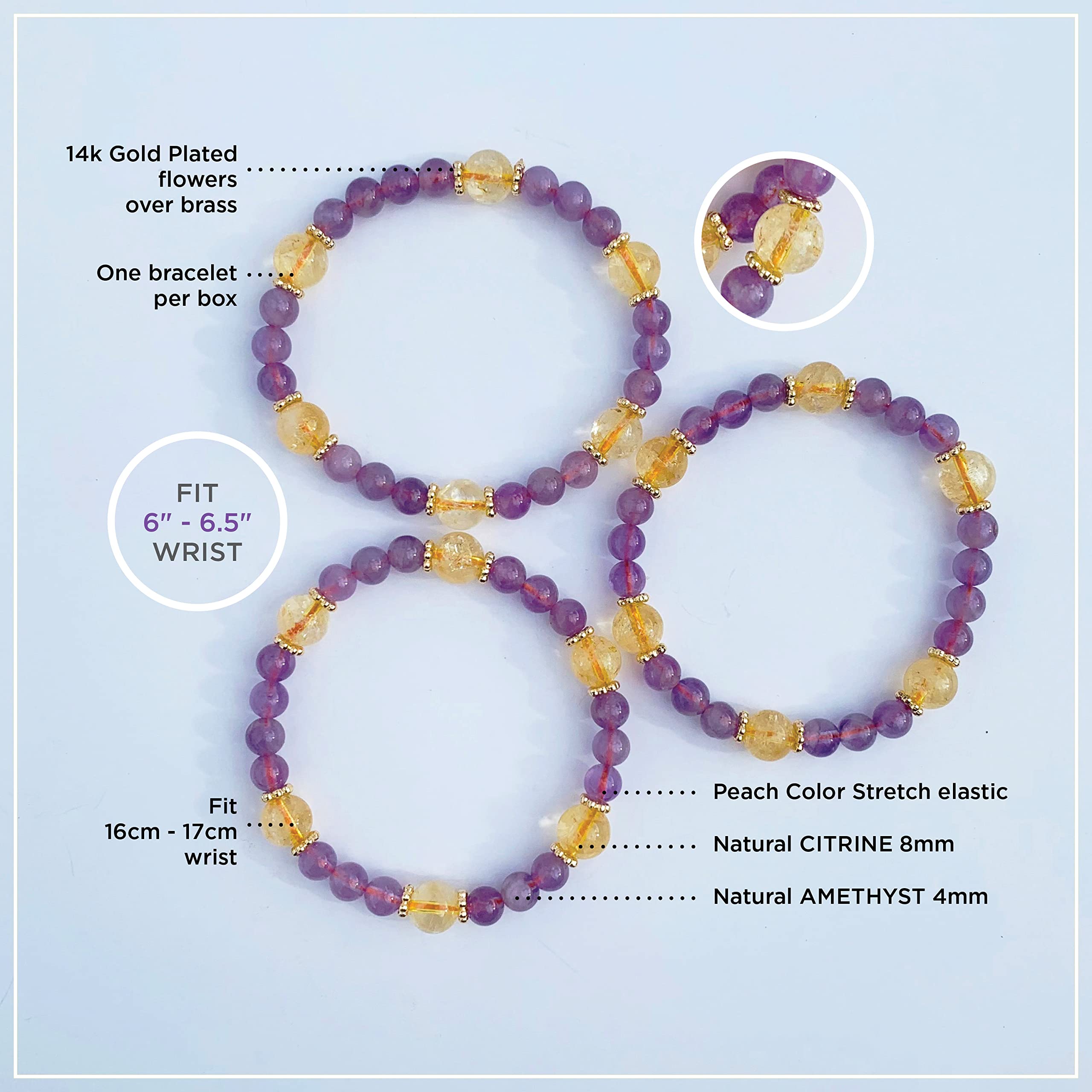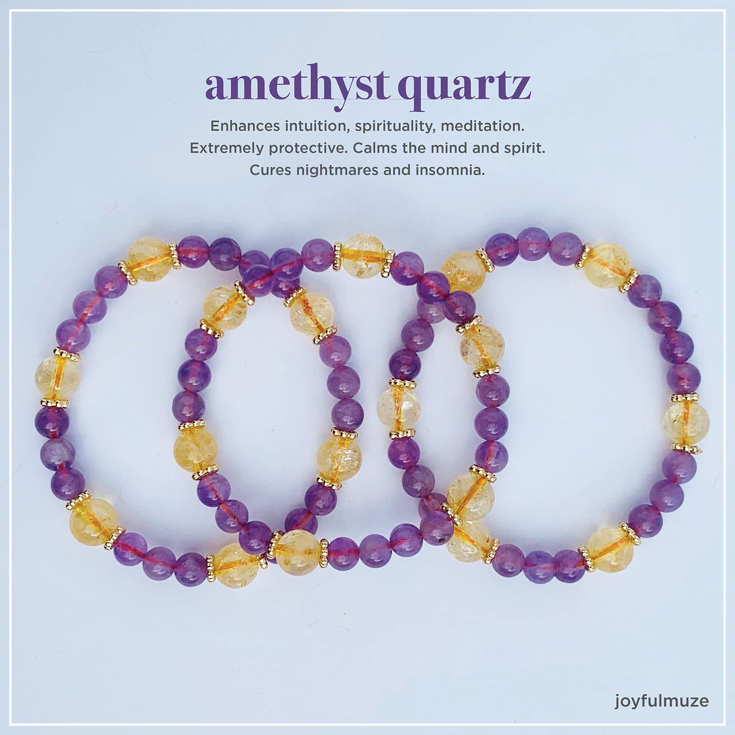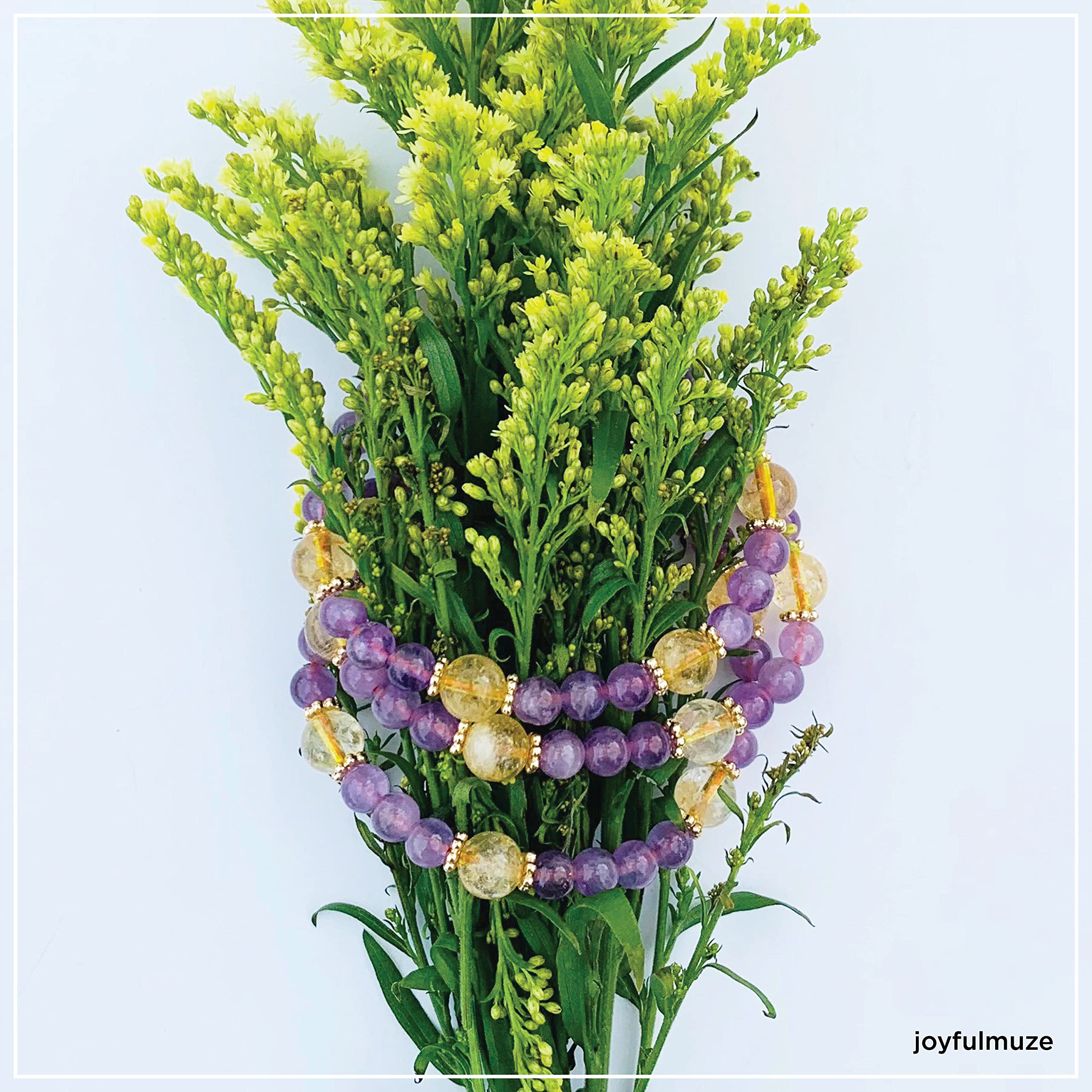Energize Your Spirit: Citrine and Purple Amethyst stones in a premium 8mm size, handcrafted for a unique and organic energy, perfect for balancing and grounding meditation.