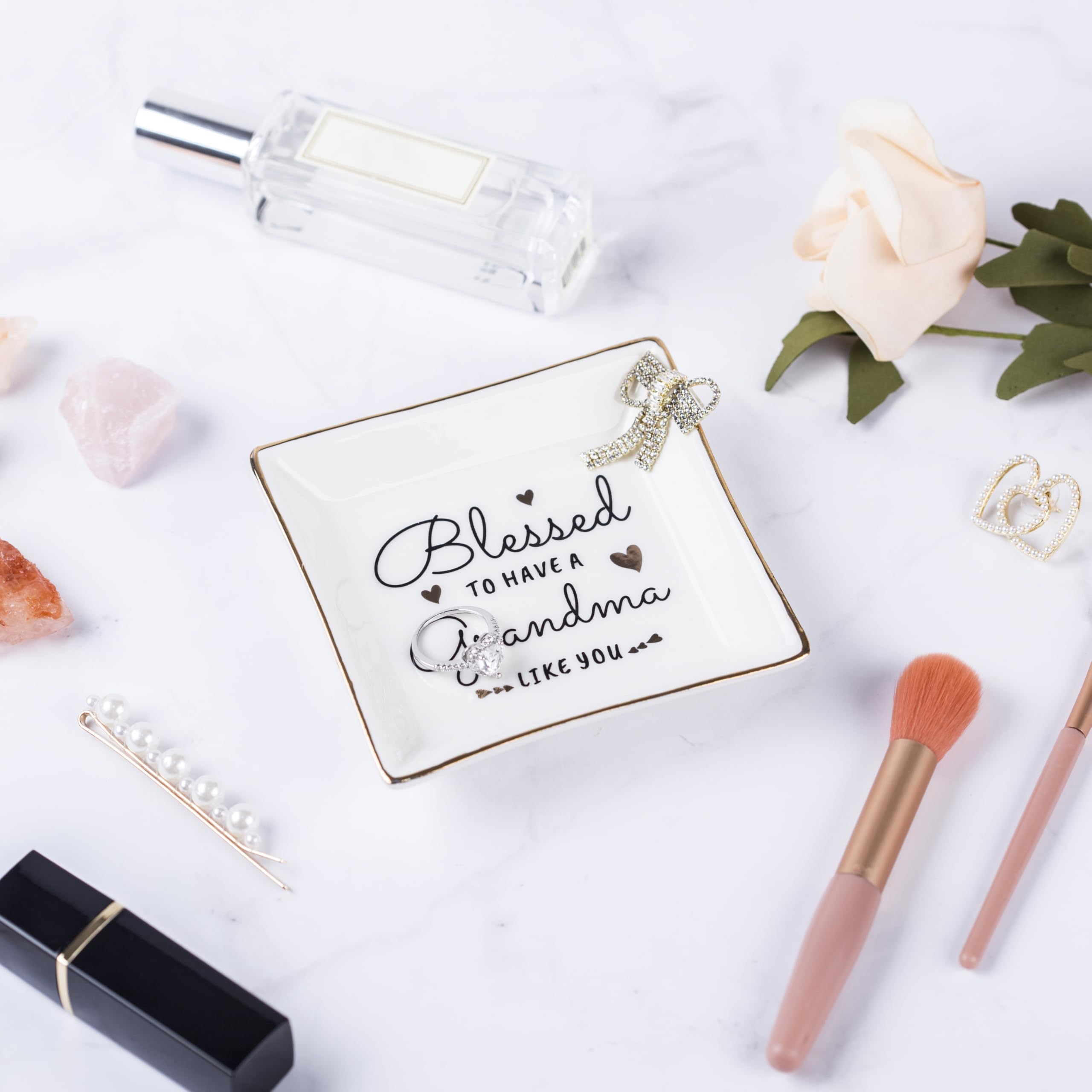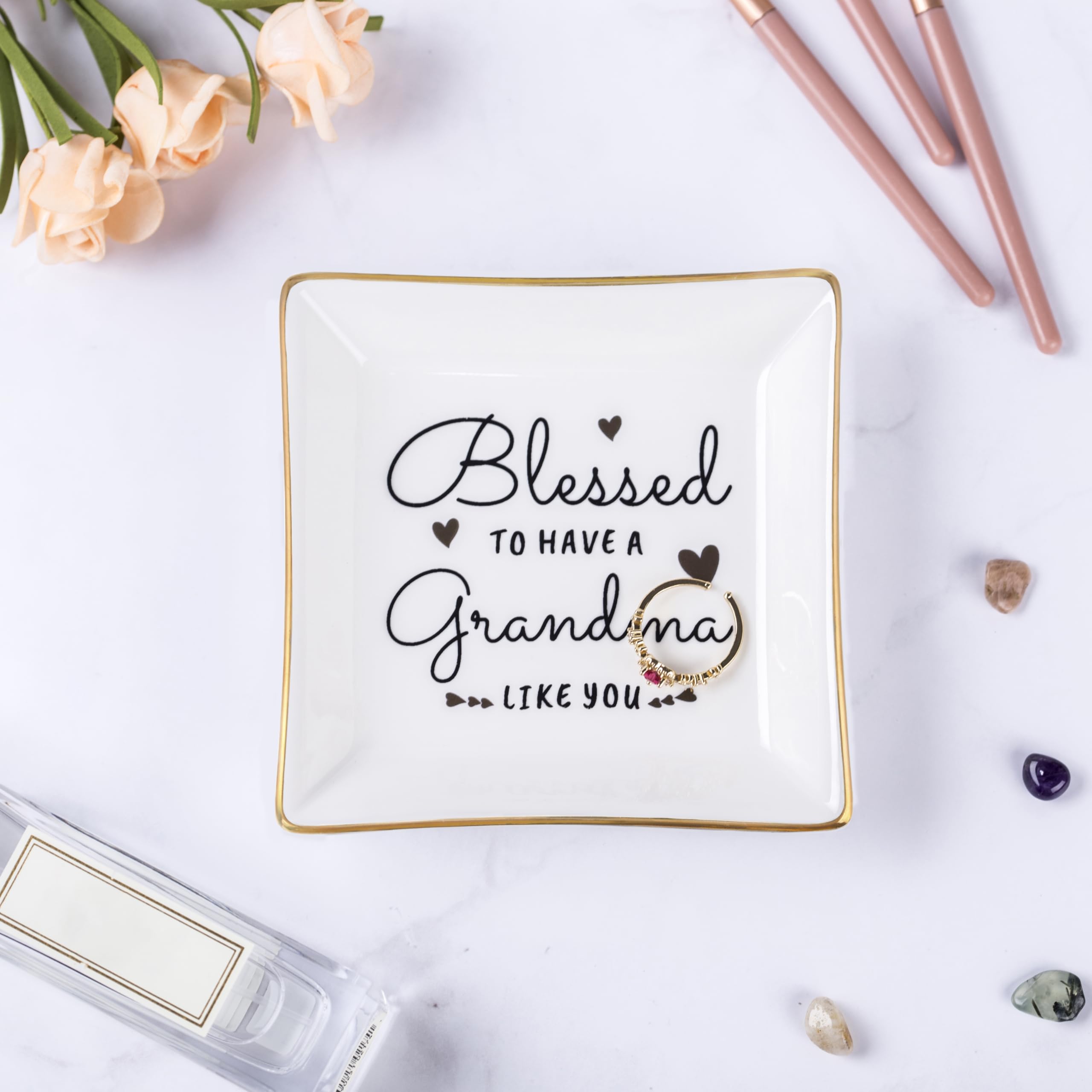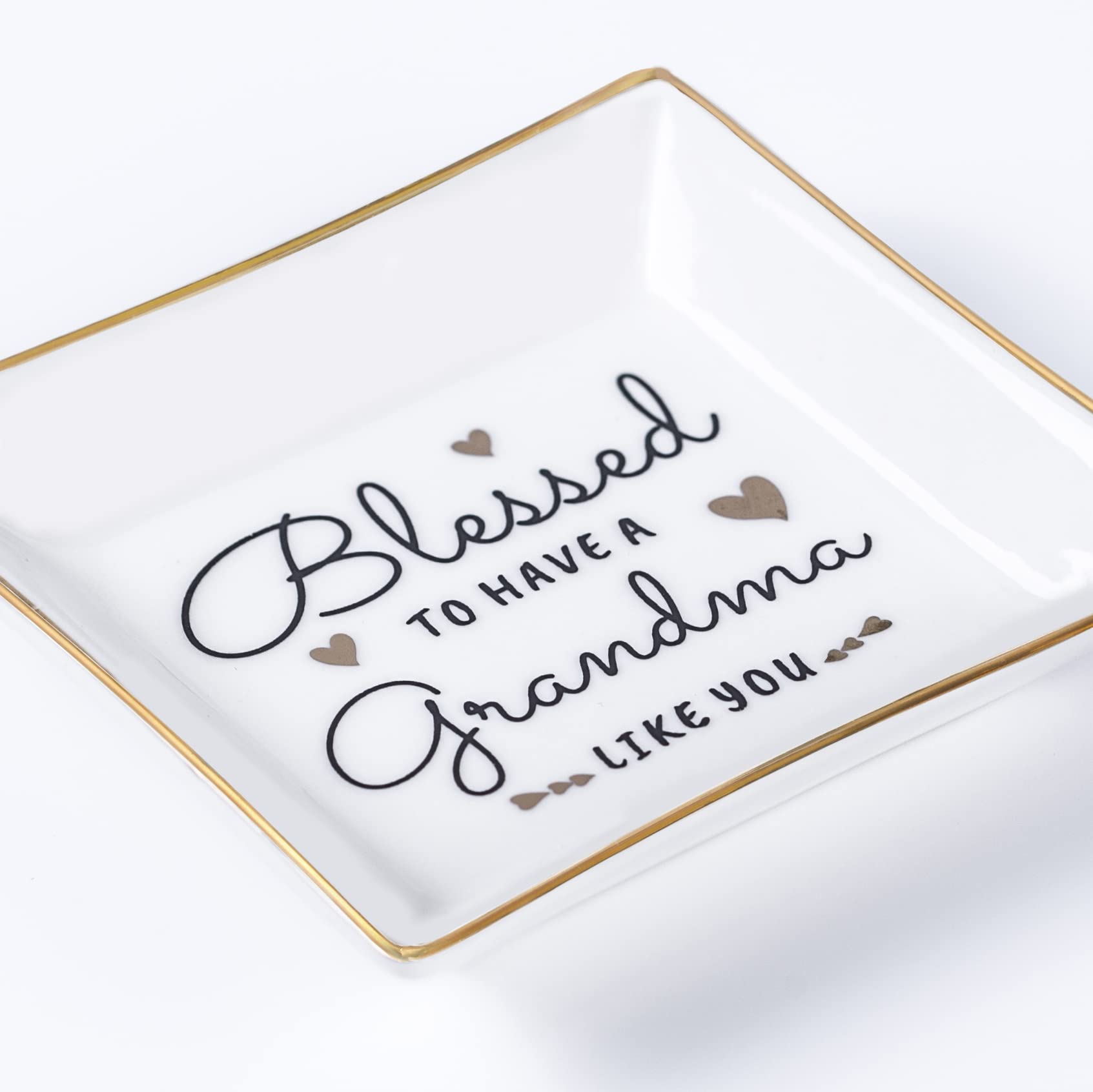 Great Grandma Gifts: Best gifts for grandma, the pretty jewelry dish with heartwarming sayings "Blessed to have a grandma like you" Thoughtful sentimental grandma gifts from grandchildren, granddaughter, grandson. This ring dish is specially designed for grandma to tell grandmother that blessed to have her and how much we love her and respect her