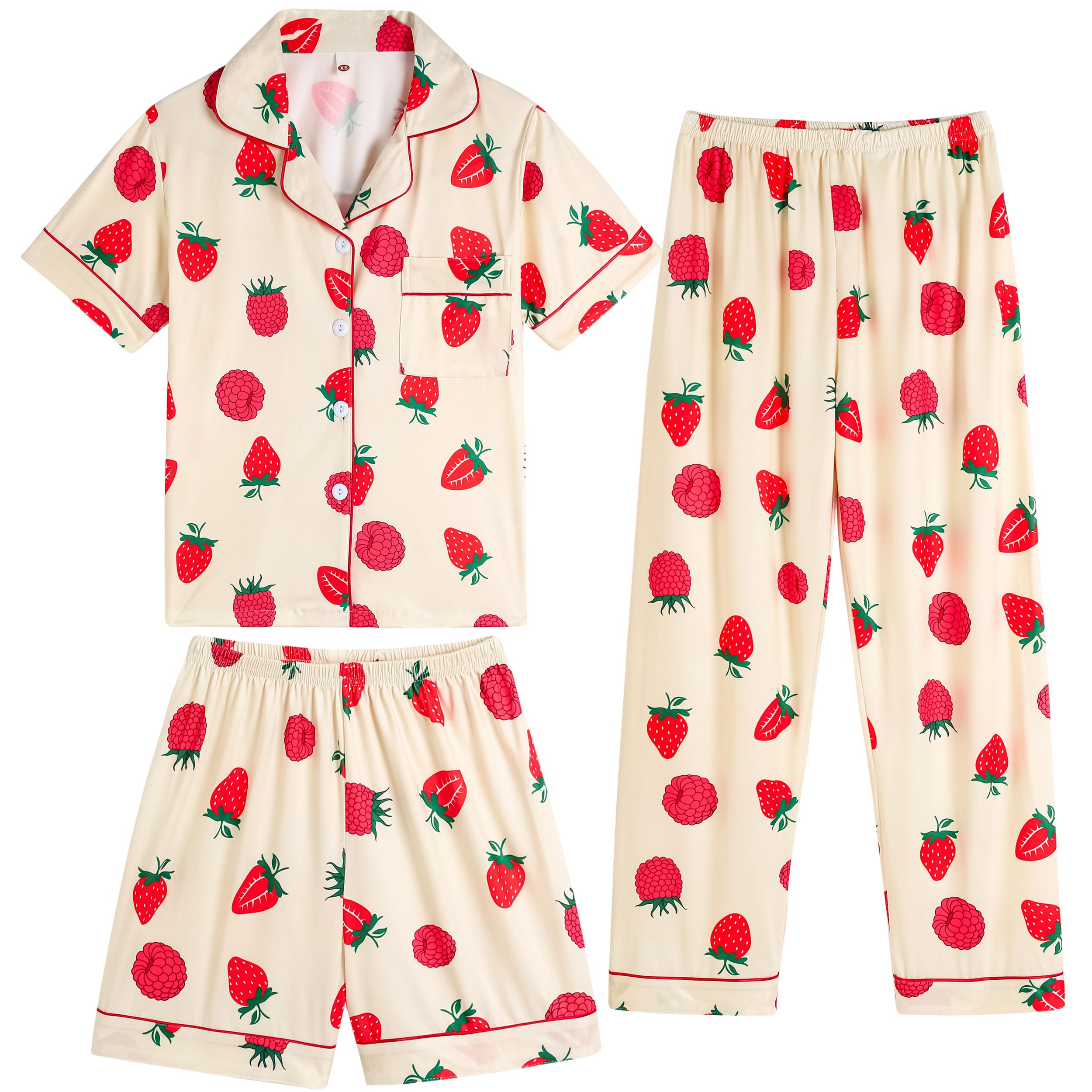Design: Button up short sleeve shirt with classic shirt collar and front pocket. Matching with stretchy waistband long pants and a shorts, very flexible and so much fun! It is like you get two sets of pajamas at the same time for your girls. Super Value 3PCS Pajama Sets. Super casual sets for kids sleeping night.