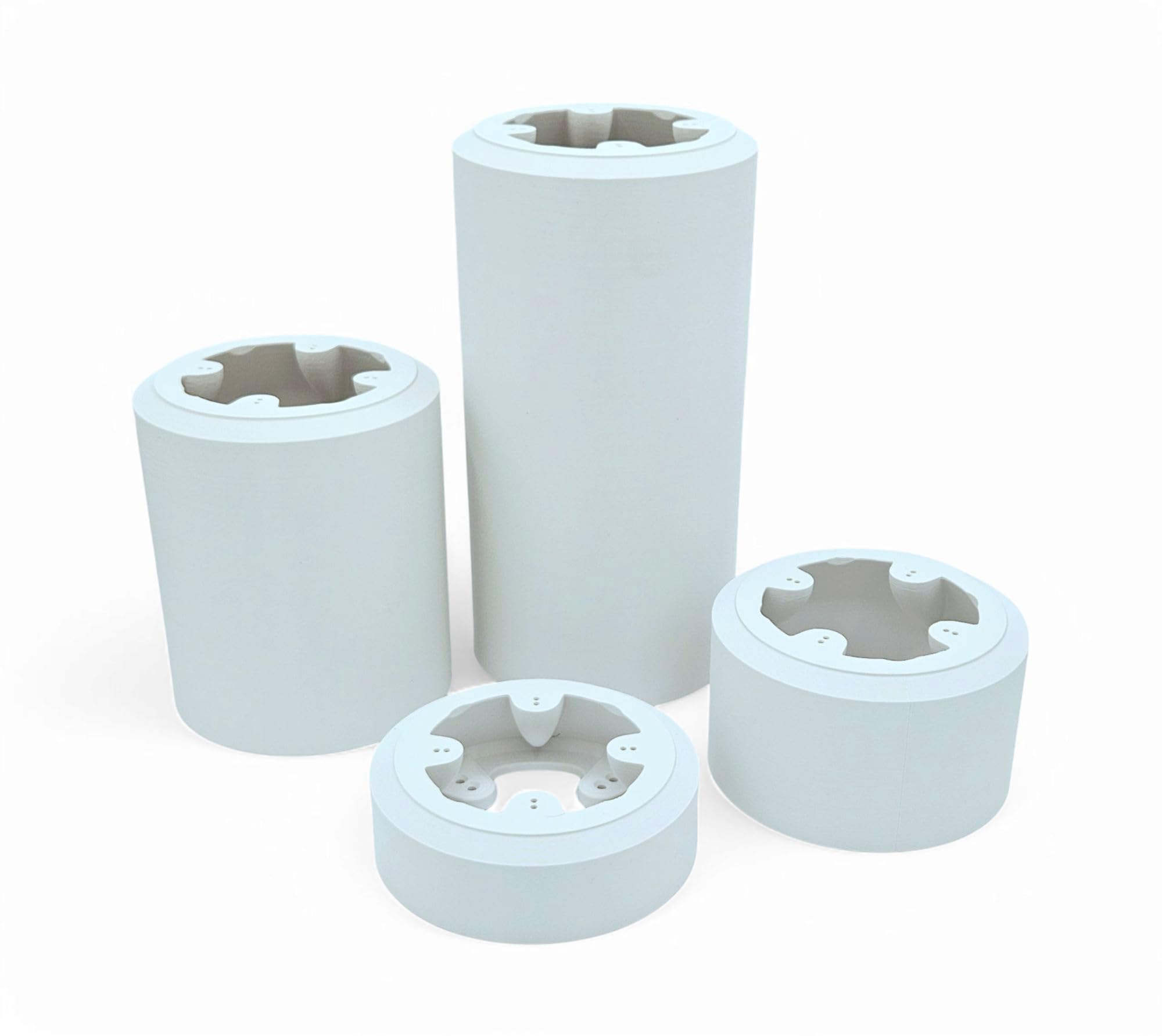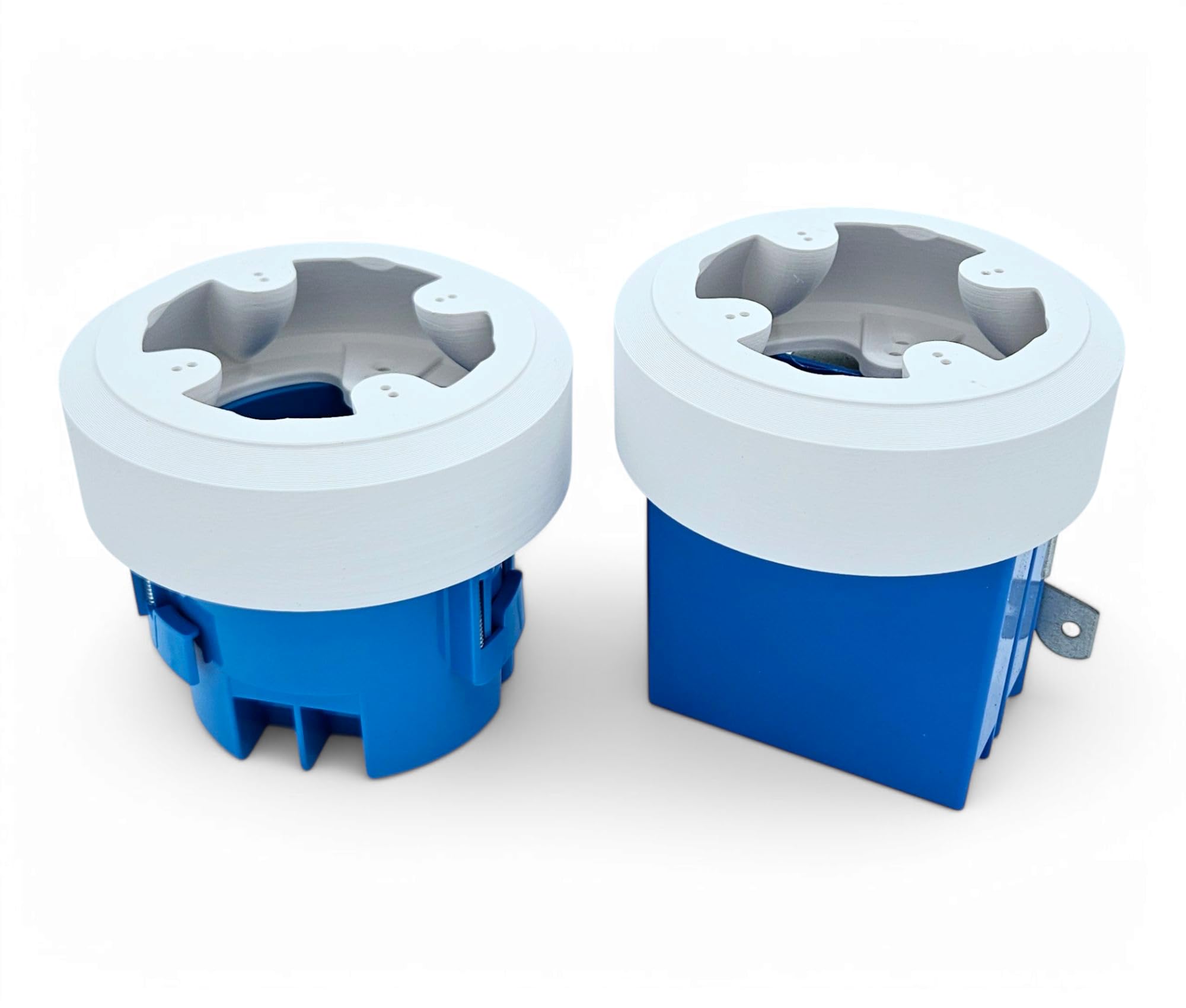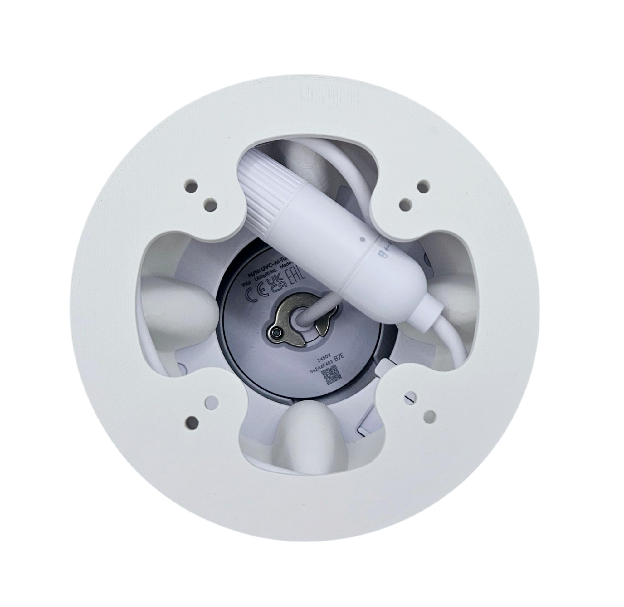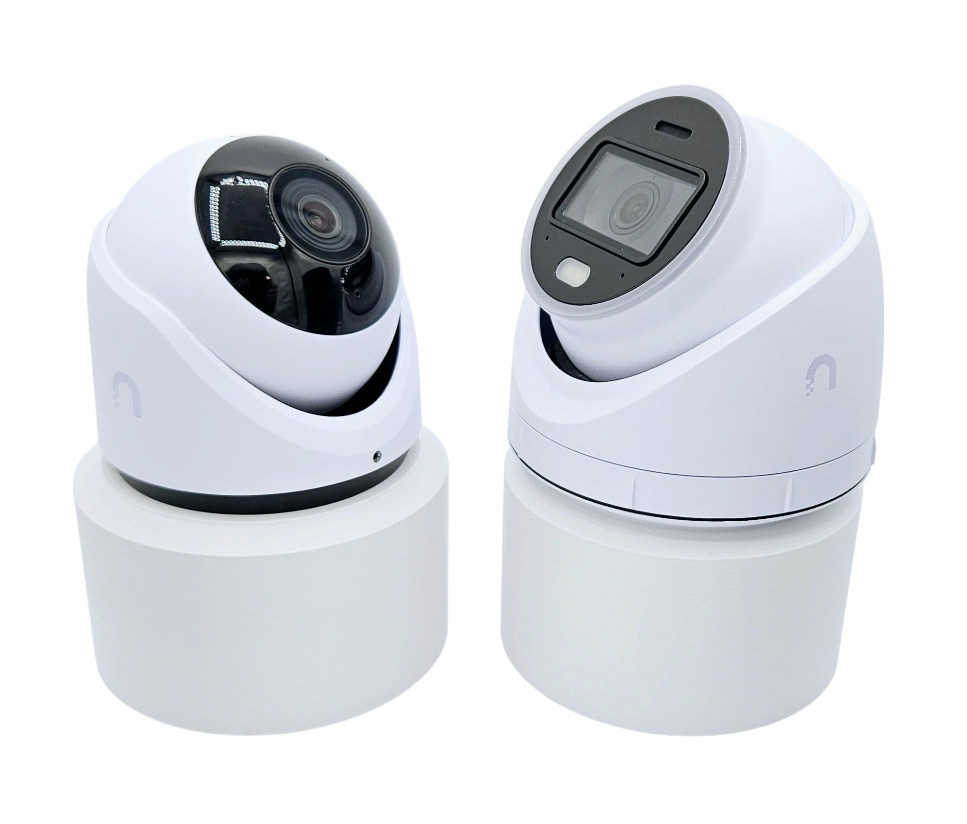 This is a heavy duty extension/enclosure/box/mount for the Ubiquiti Unifi Turret AI, G5 Turret Ultra, and G6 Turret cameras. The plastic enclosure attaches directly to the Turret base plate using small screws (included). This is a great way to extend the camera from your mounting surface in special cases. A classic example is mounting the camera under your soffit and a trim board or gutter is in the way. The other advantage to this enclosure is that it can completely contain the ethernet cable from the camera as well as the weather-sealed ethernet connector (except the 0.75" height which WILL NOT contain the weather-sealed ethernet connector). In many applications, it is not possible or desirable to drill a large hole to pass this connector through, so this enclosure lets you contain everything right behind the camera, and it is sleeker than a large junction box. Especially if you are replacing an older Bullet camera with a Turret where you already have an existing cable protruding from the wall or ceiling, you won't want to have to try drilling out a bigger hole for the new connector. The outer diameter of this enclosure is 118mm (4.65 inches) and we make them in several heights. These tubes can be stacked to add length, and they will also attach directly to a single gang electrical box or a round box with 2.75" hole spacing (screws included). The shortest variant is just 1.5" tall and the weatherproof connector can still be completely contained within the enclosure, but if you are working with thick outdoor/shielded ethernet cable, it may be difficult to get it to bend tightly enough to fit, so one of the larger enclosures may be preferred (but the short one will definitely work). Stainless steel screws are included with each camera mount/enclosure to attach the camera to the enclosure and attach the enclosure to your surface. If you are attaching to drywall or masonry then you will need to supply plastic wall anchors (readily and cheaply available at any hardware store). These are 3D printed ASA parts which we make in-house (so you can expect some small aesthetic imperfections). ASA is an outdoor plastic with excellent weather and UV resistance (unlike many other plastics being used for 3D printing). ASA also accepts paint nicely, which will be useful if you plan to paint these to match your house colors. We suggest using a primer before painting.