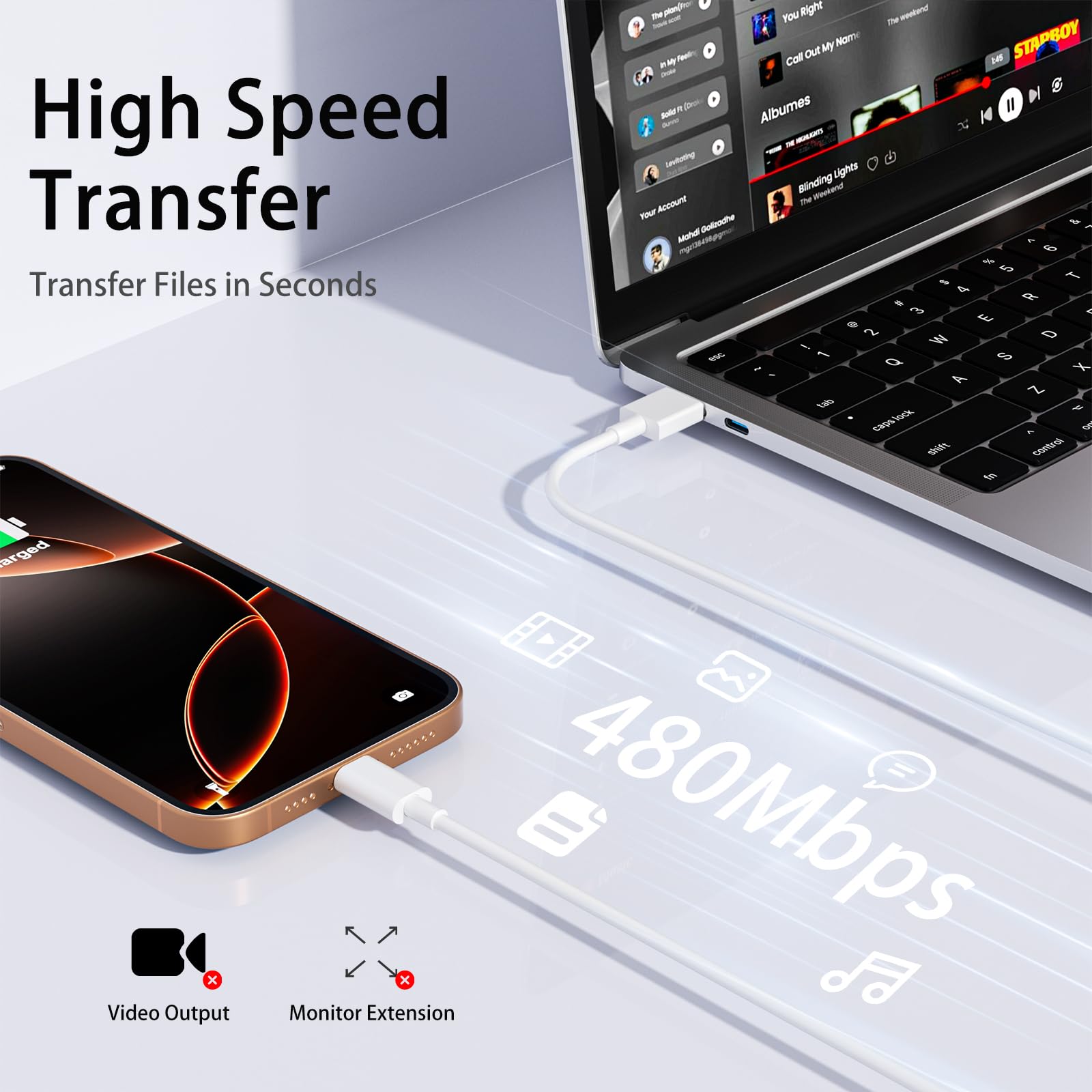 Fast Charge & Sync data:TYPE-C-USB Charging cable Adapter supports fast charging, ensuring safe, high-speed charging up to 3 A, Transfer speed can reach 40~60MB/S (480Mbps), and works better for Phone 15/16 and quick charge TYPE-C Port Devices.