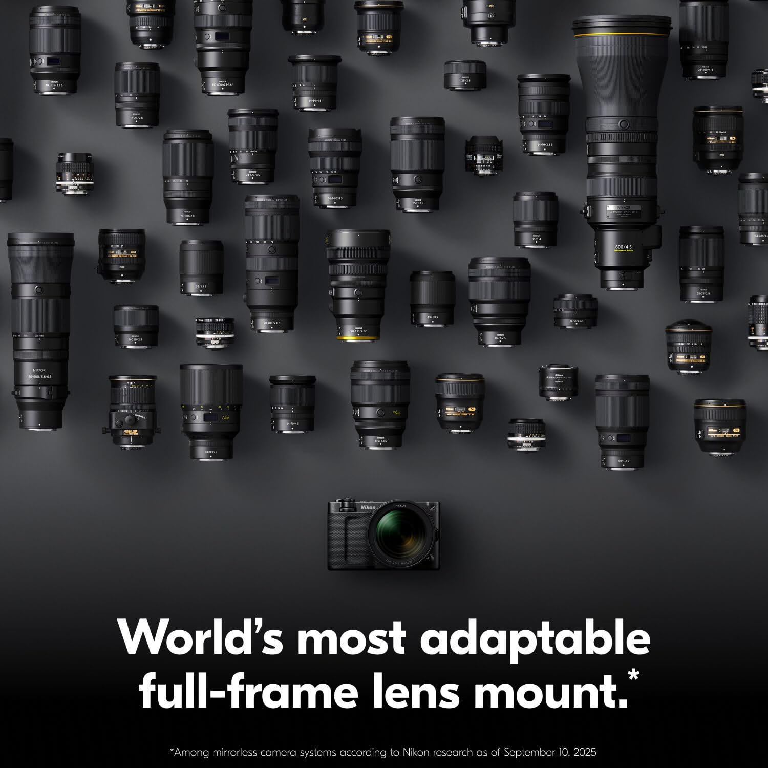 World’s widest, shallowest, most adaptable full-frame lens mount (according to Nikon research, as of September 10, 2025)