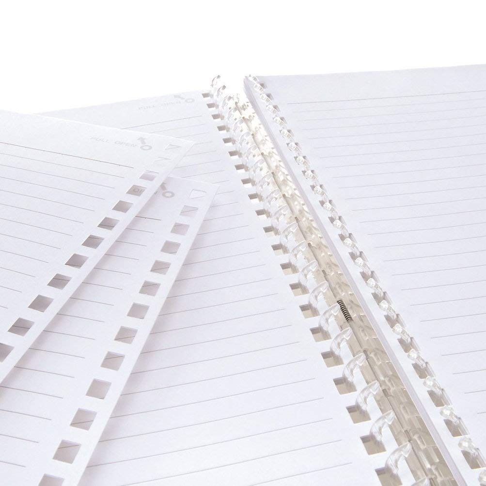 This twist ring notebook allows you to file away your notes and memories without tearing off pages! employing a unique mechanism, the rings come unhooked by placing pressure on both the top and bottom of the notebook while pulling away. It keeps your note sheets organized without the usual mess from torn pages. It also provides an easy Exchange process among friends and colleagues; neatly transfer pages from one notebook to another, and keep refilling your notebook with fresh new sheets. You can choose from a variety of colors with a clean, light design.