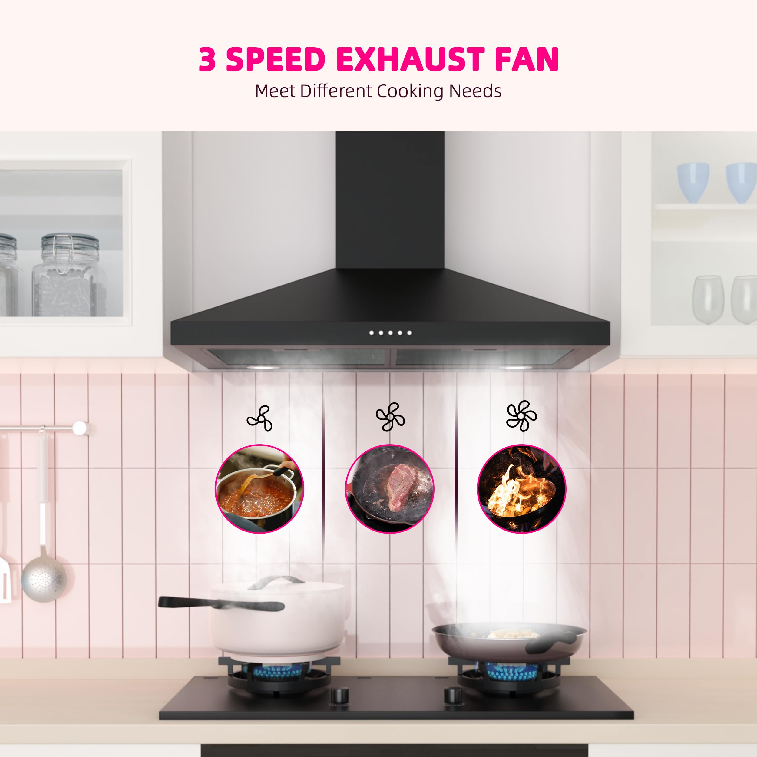 EASY TO INSTALL AND OPERATION: Easy to install with the instruction manual and the installation guide video. Wall mount range hood 30 inch with 5-button controls, simple operate and sensitive reaction. Low/ Medium/ High Speed button suitable for different cooking method