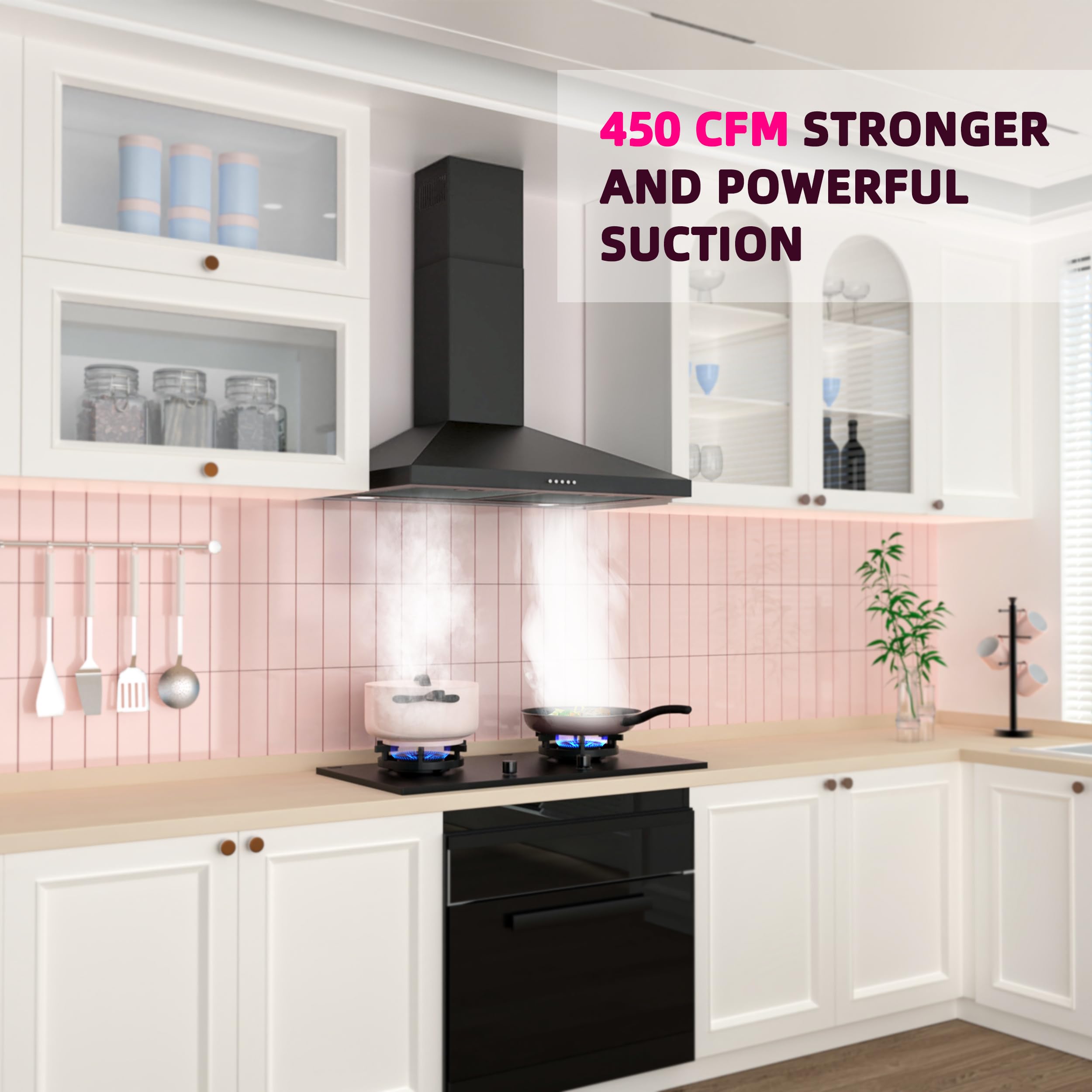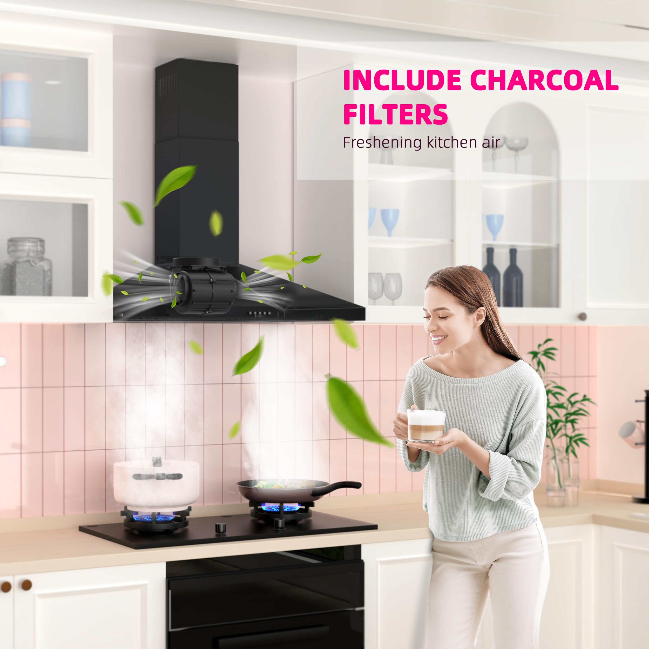 RANGE HOOD WORK EFFICIENTLY : Black range hood 30 inch with a 450 CFM motor and 3-speeds exhaust fan which can removes smoke and odors effectively.Reduce the damage to your skin and health. Ductless range hood can be convertible to ductless with included Carbon Filter( model: CC110). Suitable for different cooking method