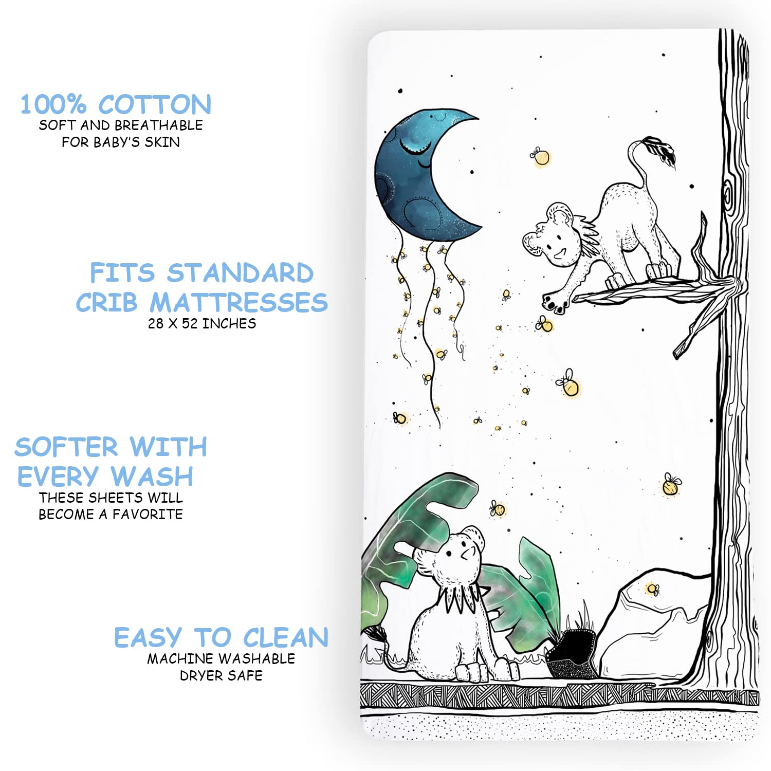 Easy To clean – Our machine-washable crib mattress cover becomes softer with each wash. Low-maintenance and durable, crib bedding sets for boys are a must-have addition to your baby essentials for effortless quality and care.