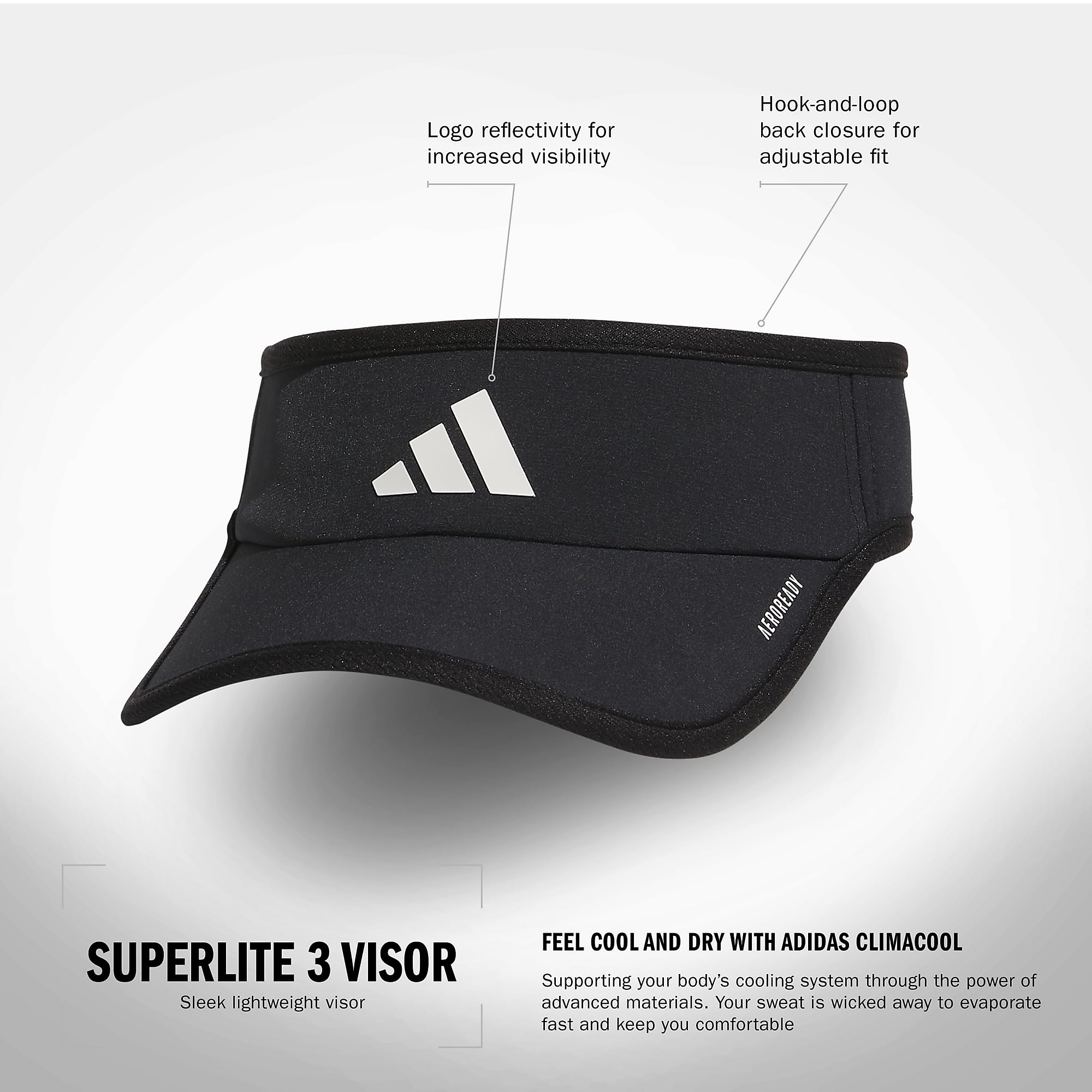 Description The adidas Women's Superlite Sport Performance Visor is a great choice for those seeking stylish and functional visor hats for women. Designed with outdoor activities in mind, this sunvisor hat womens provides excellent sun protection. Its sleek and lightweight design is complete with a premium badge of sports logo. The mesh construction of this women's visors allows for airflow and moisture-wicking, making it an ideal choice for active pursuits. The visor not only adds a clean and fashionable touch but also features a non-glare undervisor. Adjust effortlessly with the hook-and-loop back closure, allowing for a personalized fit.