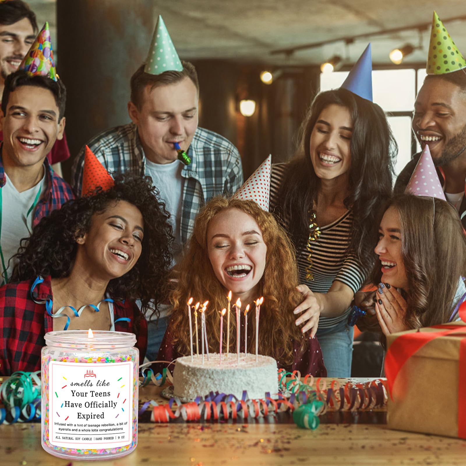 Cool Gifts for 20 21 Year Old Girls: This birthday candle reads "Your Teens Have Officially Expired," which humorously marks the transition from adolescence to adulthood. A perfect gift for 20th birthday celebrations!