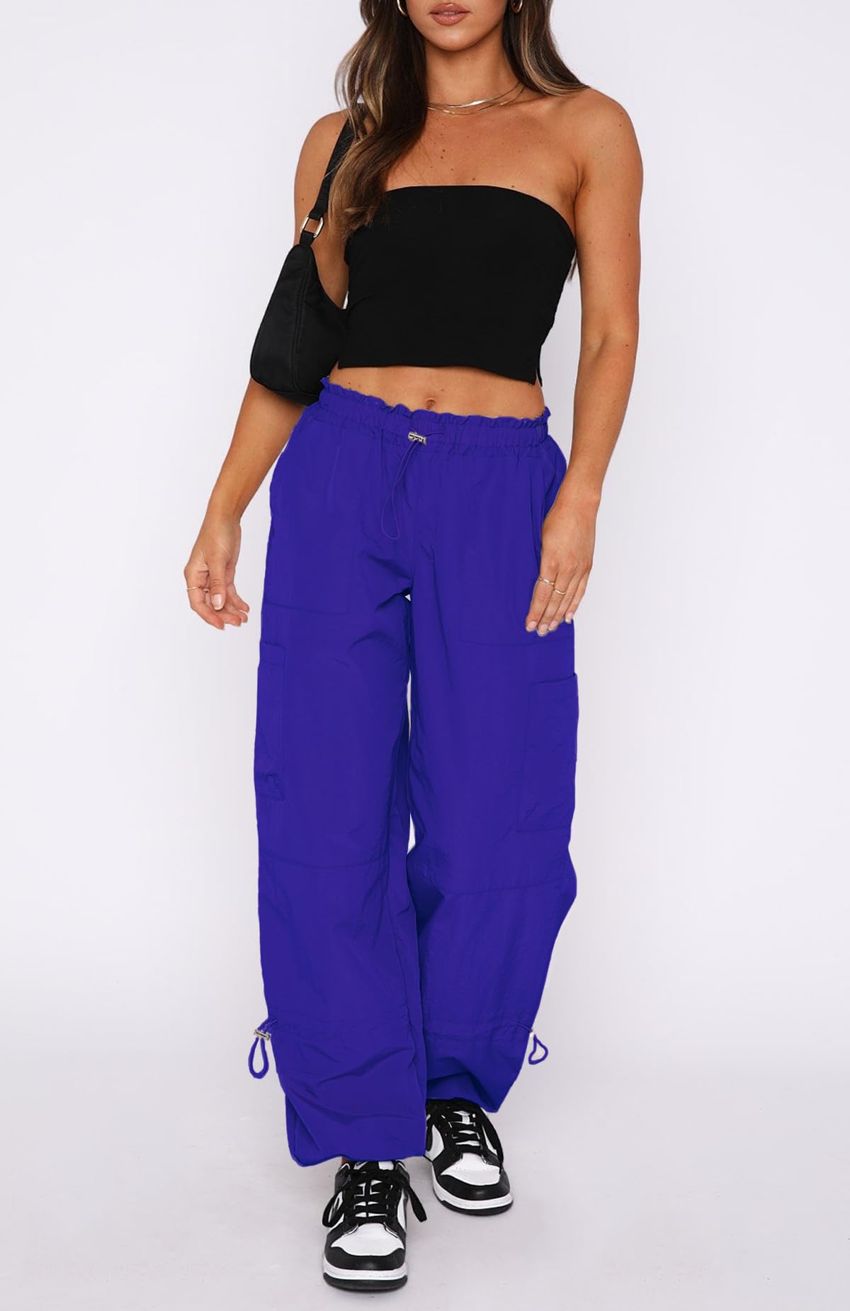 Description Waitfairy Women's Parachute Cargo Pants with Baggy Fit and Pockets Show off your confidence with these sexy, stylish parachute pants that hug your curves in all the right places. With a unique drawstring and elastic waistband, these women cargo pants offer a comfortable and secure fit that flatters all body types. The loose fit and wide leg design allow for maximum movement and breathability, making them perfect for outdoor activities such as hiking, camping, lounge,travel and jogging. Feature: 1) Parachute pants for women feature a wide leg fit, drawstring with toggle, elasticated waistband and cuffs, and side pocket design on legs 2) Material: 100% nylon Skin-friendly, soft, comfortable for all-day wear 3) With multiple pockets on the legs, you can easily carry all your essentials without having to lug around a bulky purse 4) Our parachute pants have a drawstring with toggle that allows for a customizable fit, ensuring that they fit perfectly on any body type 5) These versatile pants are perfect for any occasion - pair them with heels and a blouse for a night out or sneakers and a t-shirt for a casual look 6) Say goodbye to boring pants: Our parachute pants come in a variety of bold and vibrant colors that will add a pop of fun to any outfit 7) color: black/army green/basil/nude/brown/orange Product: cargo pants,parachute pants for women, Y2K pants,versatile pants, outdoor pants, stylish pants, comfortable pants, wide leg pants, loose fit pants, casual pants, dressy pants, multiple pockets sweatpants,Hippie Pants,low rised low waisted pants,Streetwear