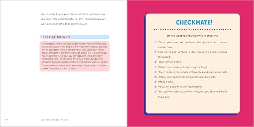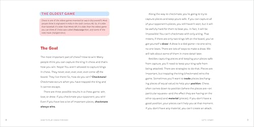 Learn to play chess―and win―with this complete guide for kids ages 8 to 12 Check it out: Playing chess is tons of fun…and it can help make you smarter, too! How to Play Chess for Kids teaches you everything you need to know to start―even if you've never played before. First get the hang of moving each piece, understand the rules, then find out how to capture pieces and win. In this book of chess for kids, you'll try out different tactics, discover super-secret strategies, and practice thinking ahead. How to Play Chess for Kids includes: How to speak chess―Chess has its own language―learn to speak it with a guide to game notation and an easy glossary. See it, play it―Lots of diagrams make learning chess for kids easy by illustrating the moves in every example. Real-life moves―Learn from the best with exciting excerpts from championship games by chess masters throughout history. You'll conquer the game of kings and queens in no time with How to Play Chess for Kids!