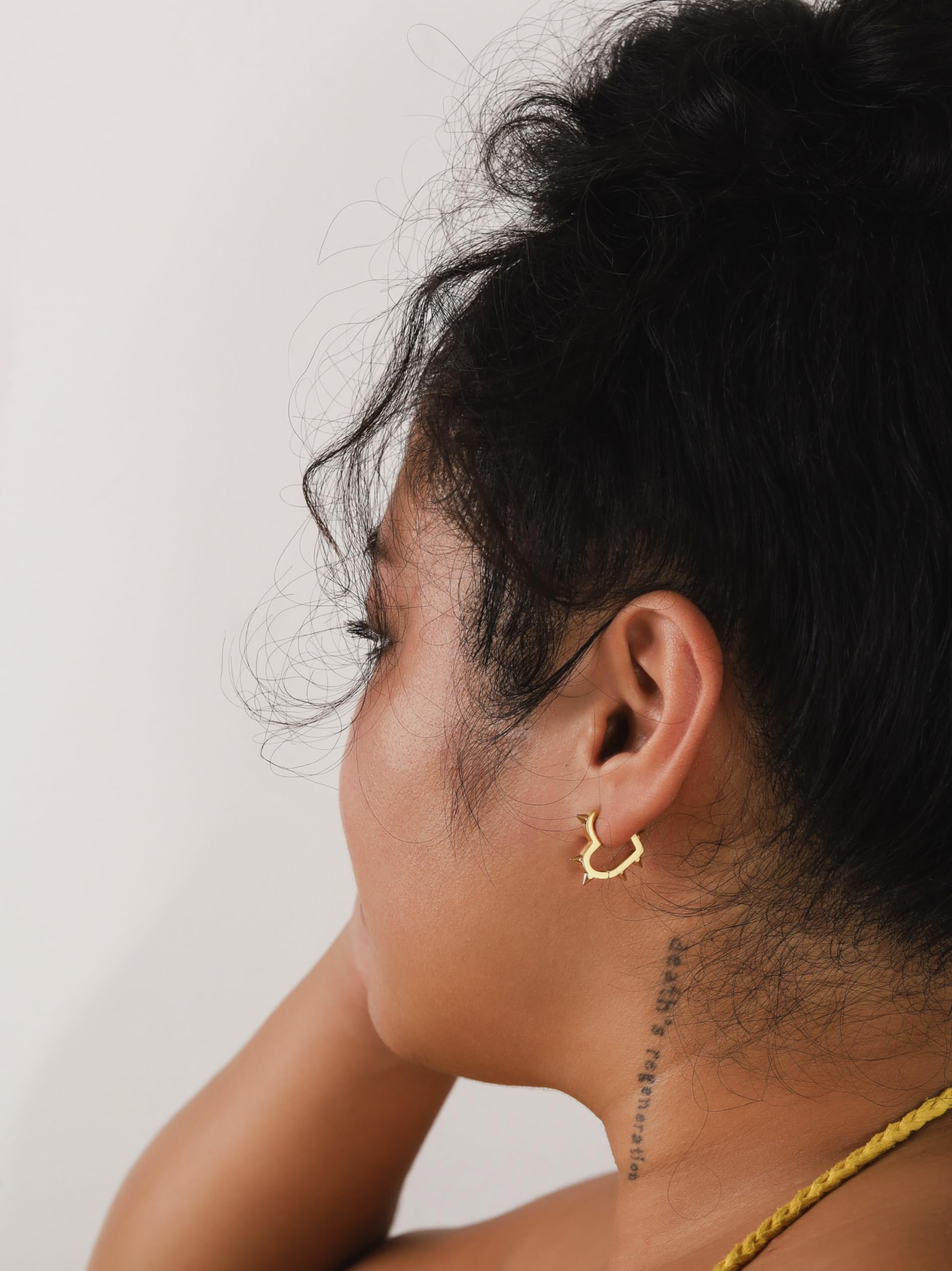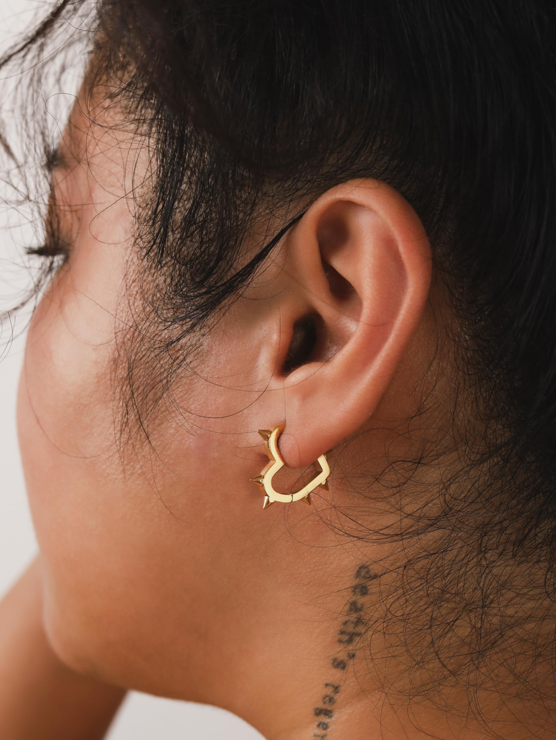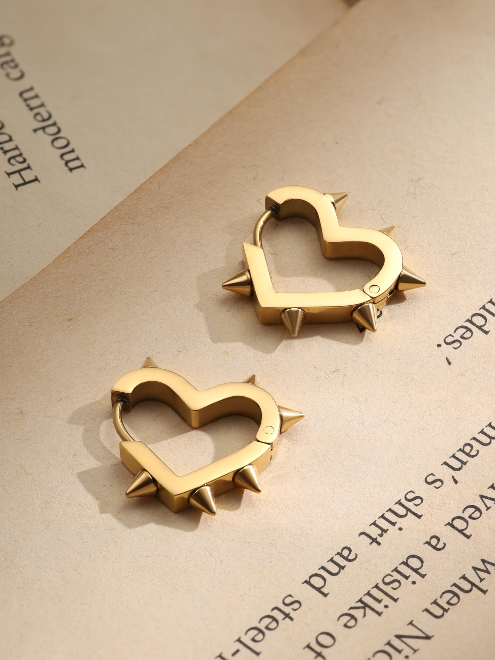 SIZE AND LENGTH: Spike Hoop Heart Earring Measures 0.7 inches in diameter