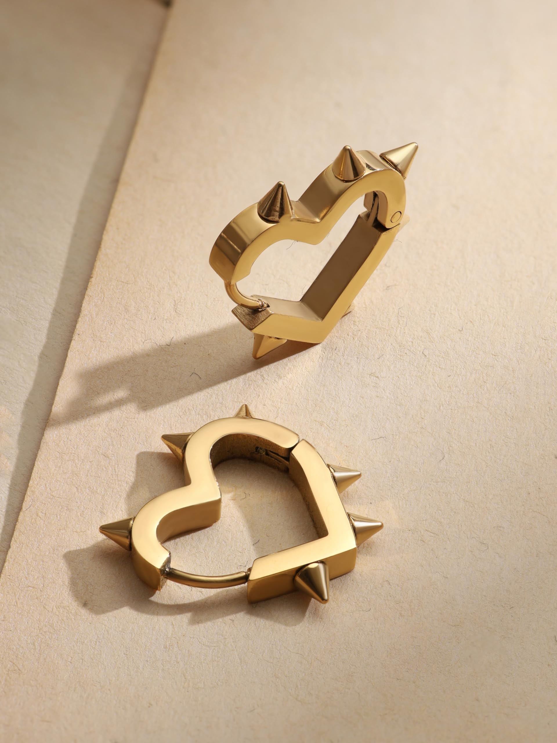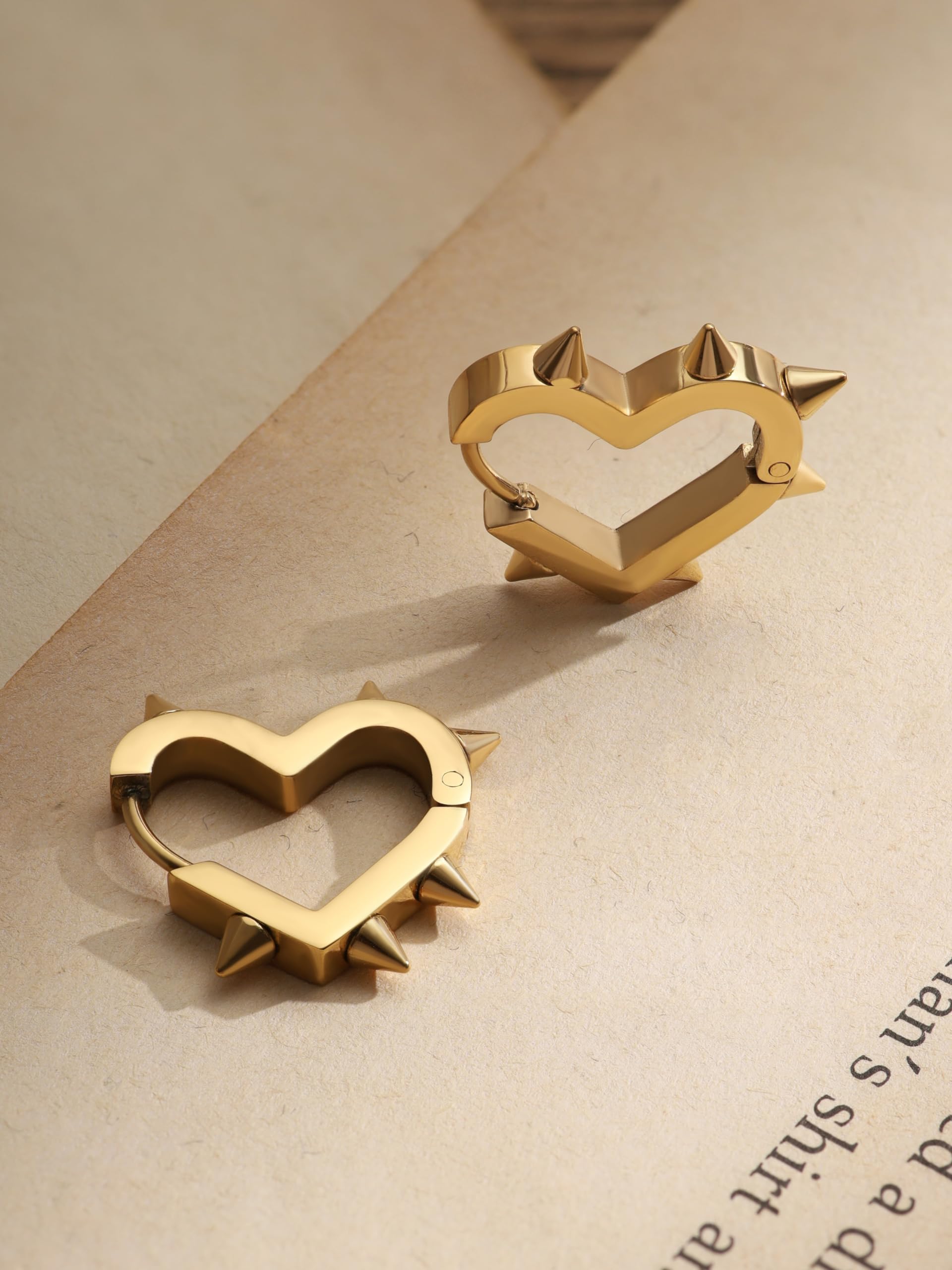 GRUNGE EMO PUNK Y2K HOOP SPIKE HEART EARRINGS: The Heart symbol has long been associated with love and emotion, making these earrings a meaningful accessory to add to your collection. Perfect for those who enjoy goth,punk and grunge styles, these earrings offer a touch of edge to any outfit while still conveying a sense of romanticism.