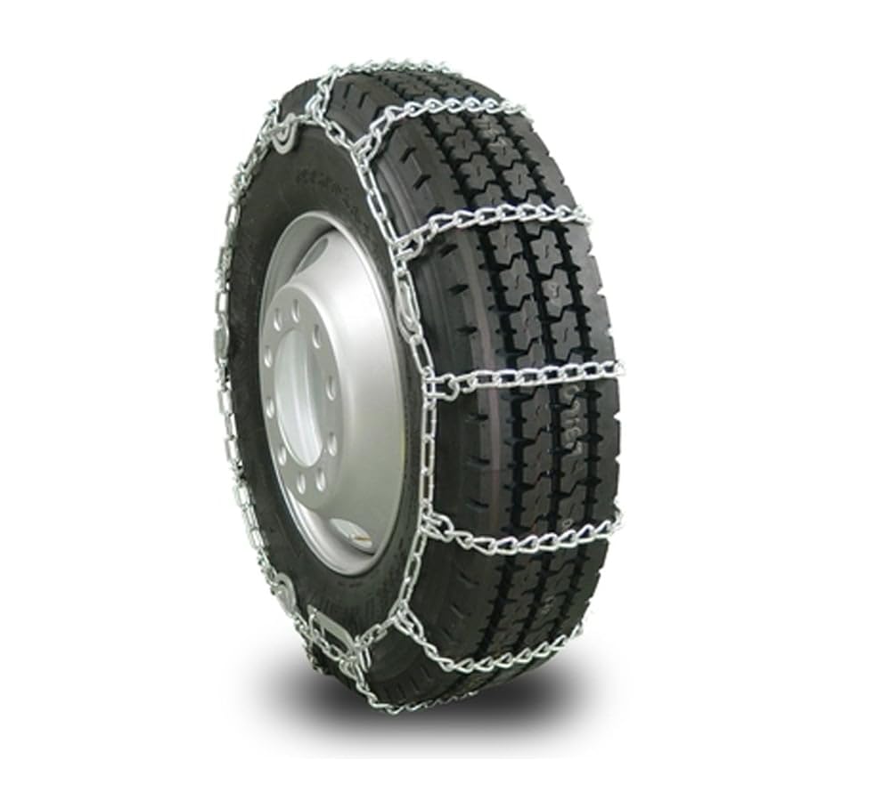 Pack Size: 2 Pack Steel Twist Link Single Tire Chain 22.5": Cross Links and Side-wall chain are constructed with hardened carbon steel. Chain links are made of Electroplated zinc coated with chromate. Cross Links: 14 Per Tire Chain Tensioning Cams: 4 Outside Cams on each set DOT approved Weight: 68 lbs. Diameter: Cross Links and Sidewalls are made of 7 mm diameter Steel Wire. Number of links in one cross link: 10 Fits the following Semi Truck Tire Sizes: 295/75R22. 5 11R22. 5
