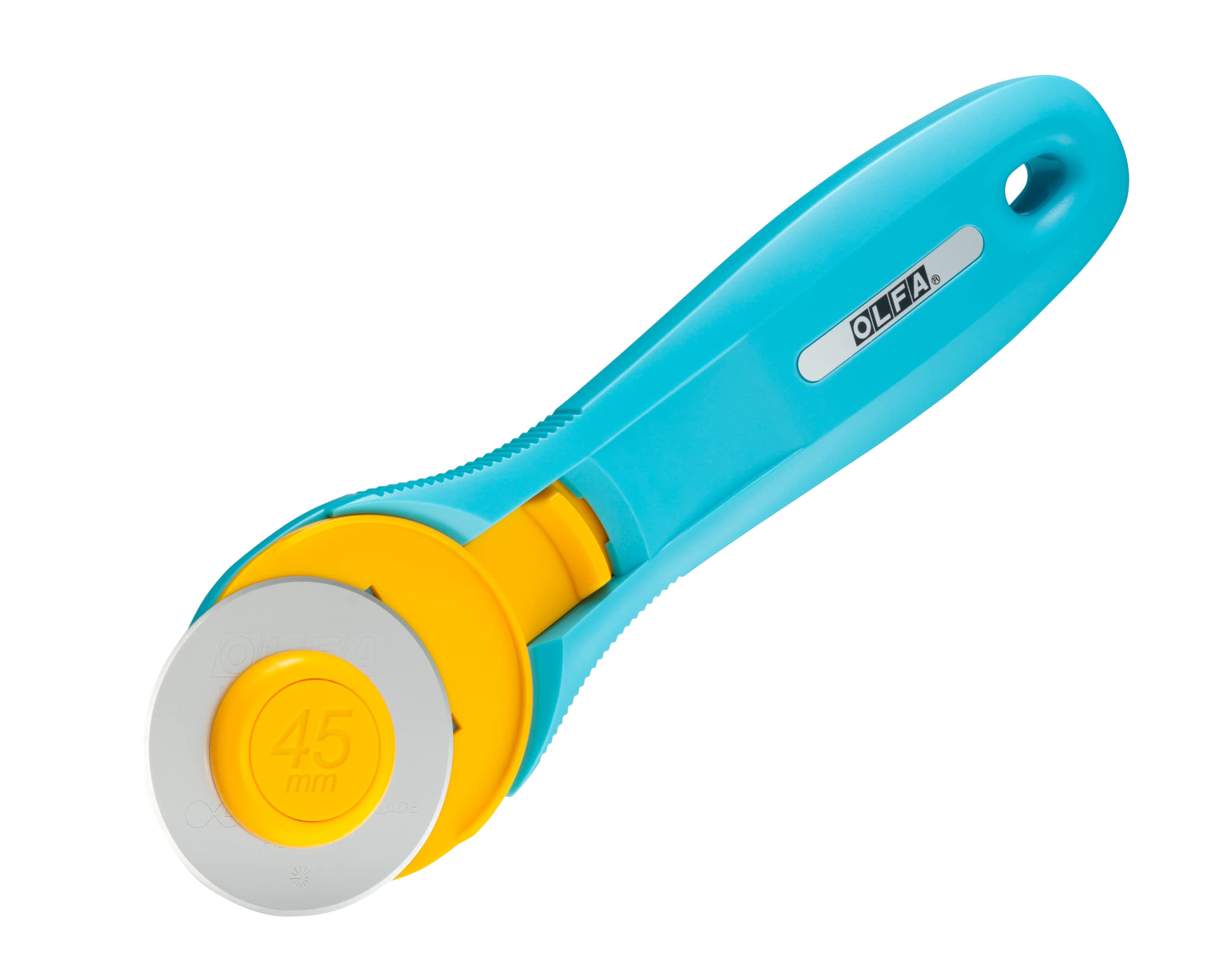 Comes with 1 OLFA 45mm quick change rotary cutter (model RTY-2/C) with ergonomic handle, pre-loaded with 1 RB45 rotary blade.