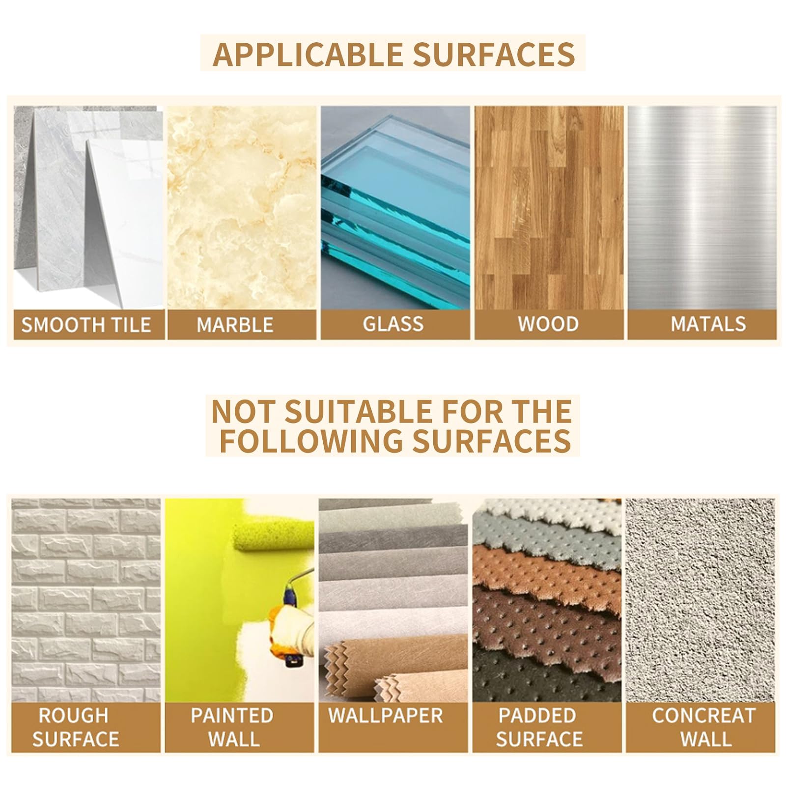 【No Drilling】– Just tear off the protective film, stick it on a smooth surface and press for a few seconds. (it must be a smooth surface, such as ceramic tile, glass, metal surface, etc., which is not suitable for wallpaper or painted walls) you can paste it in the desired position.
