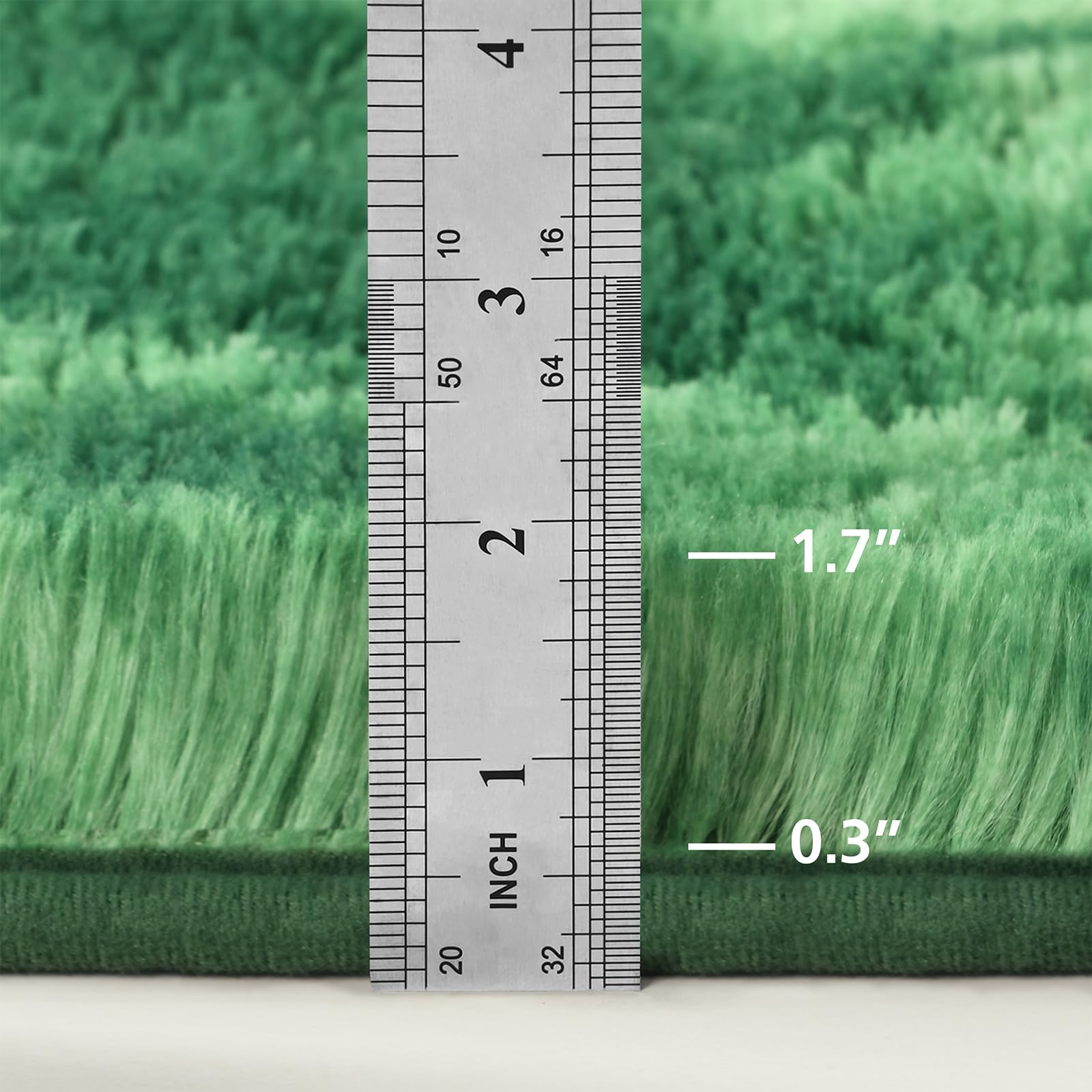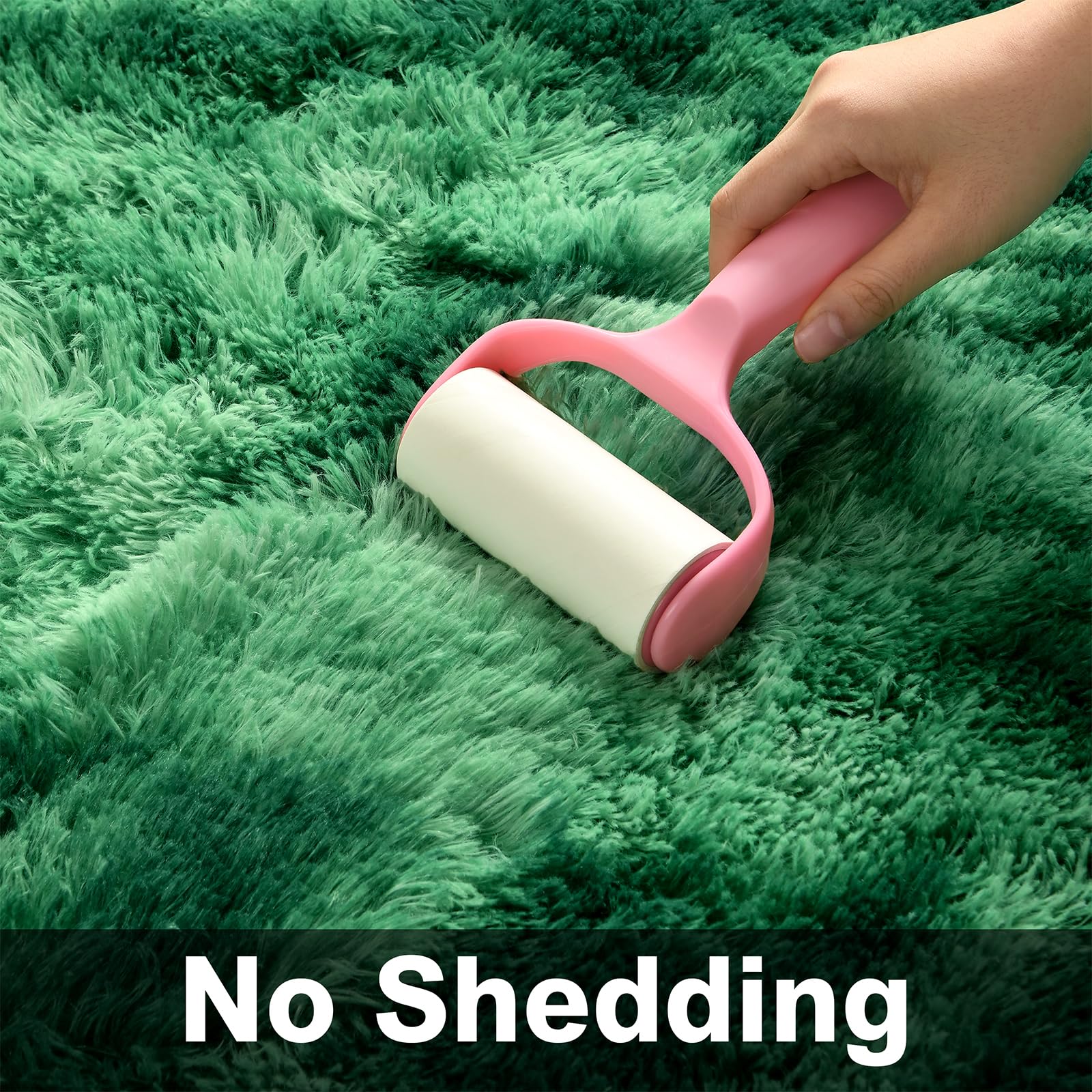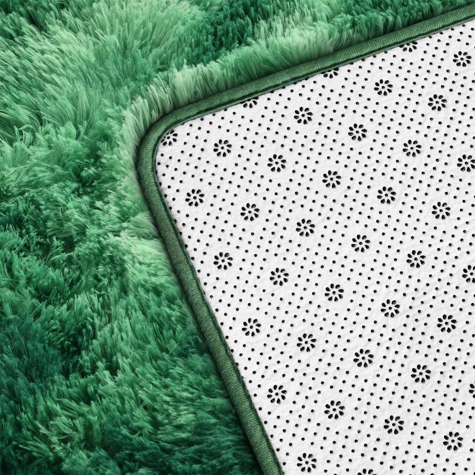 Ultra Soft Fluffy Rug: Because of the plush fur on the Tie-dyed emerald green rug, you’ll feel like walking on the clouds when walk barefoot on the large rugs for living room. Besides, the high pile shag soft carpet will also shield you from the cold floor, and stay fixed in place with latex dots backing