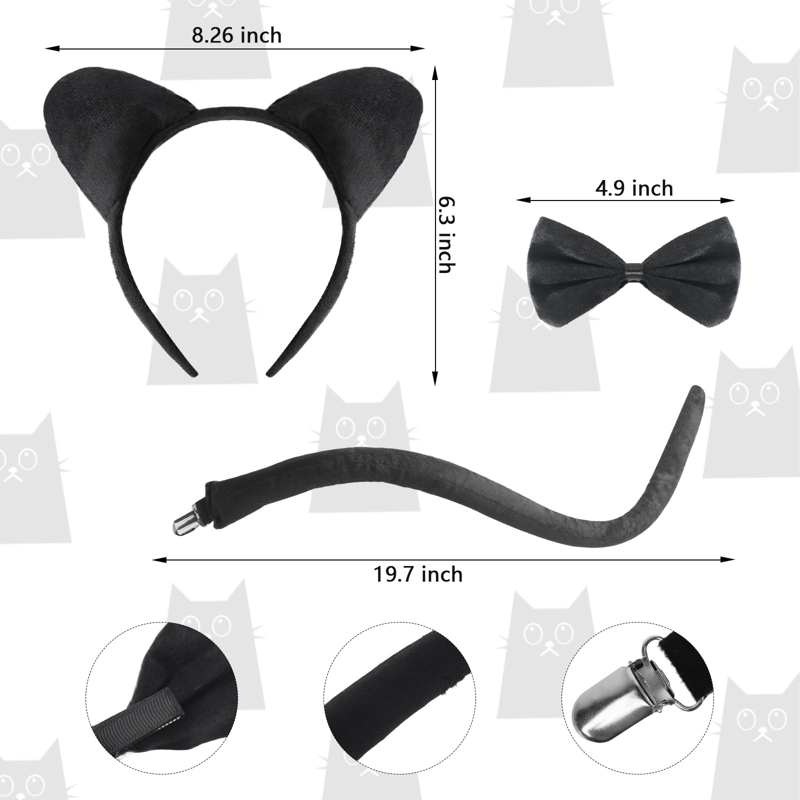 Perfect For One Size Halloween Costume: The black cat costume 's headband is 8.26 inches wide, its bow is 4.9 inches wide, and its tail is 19.7 inches long. The length of skirt is about 12.1 inches long and has a waist circumference of 2.9 feet. Suitable for ages 3 and up