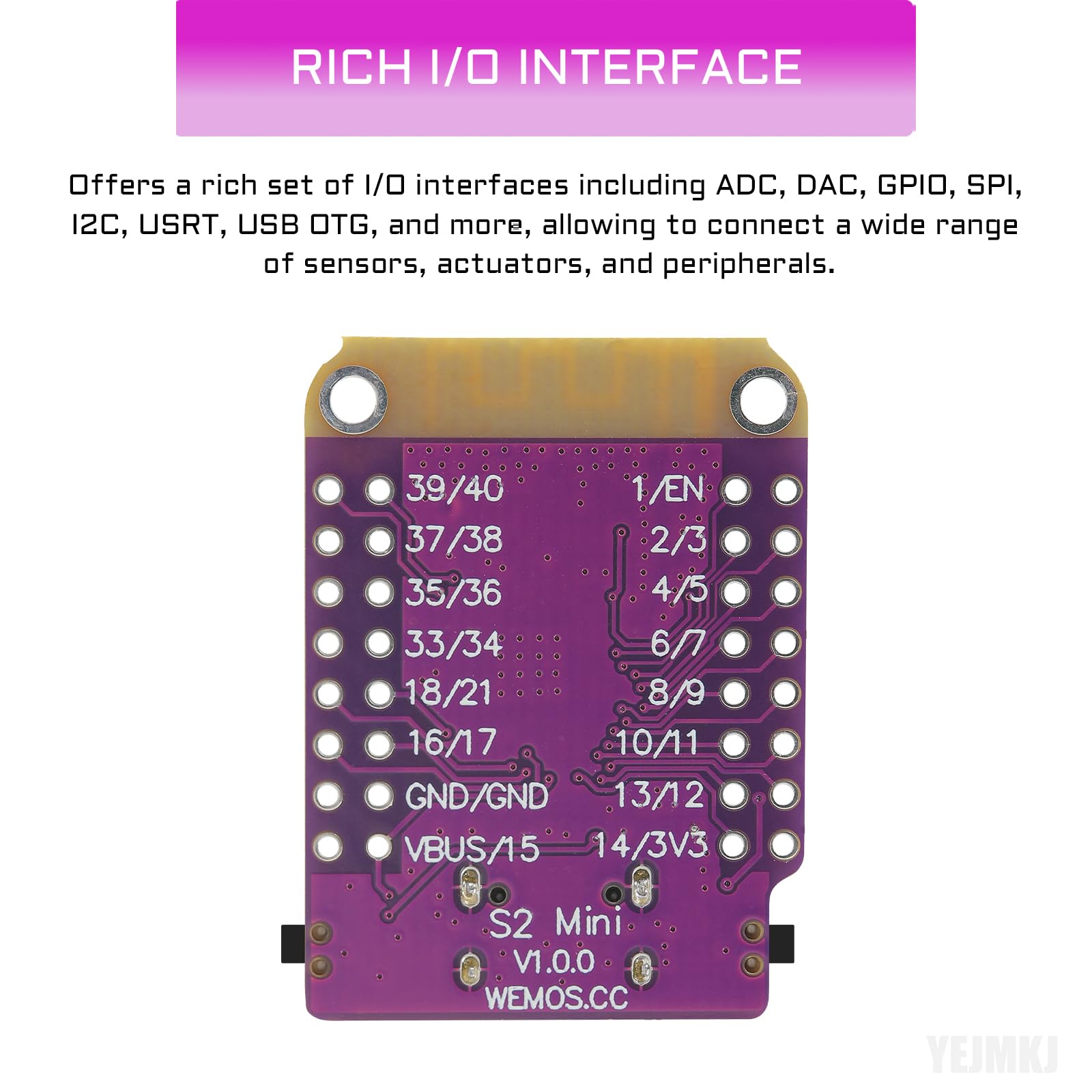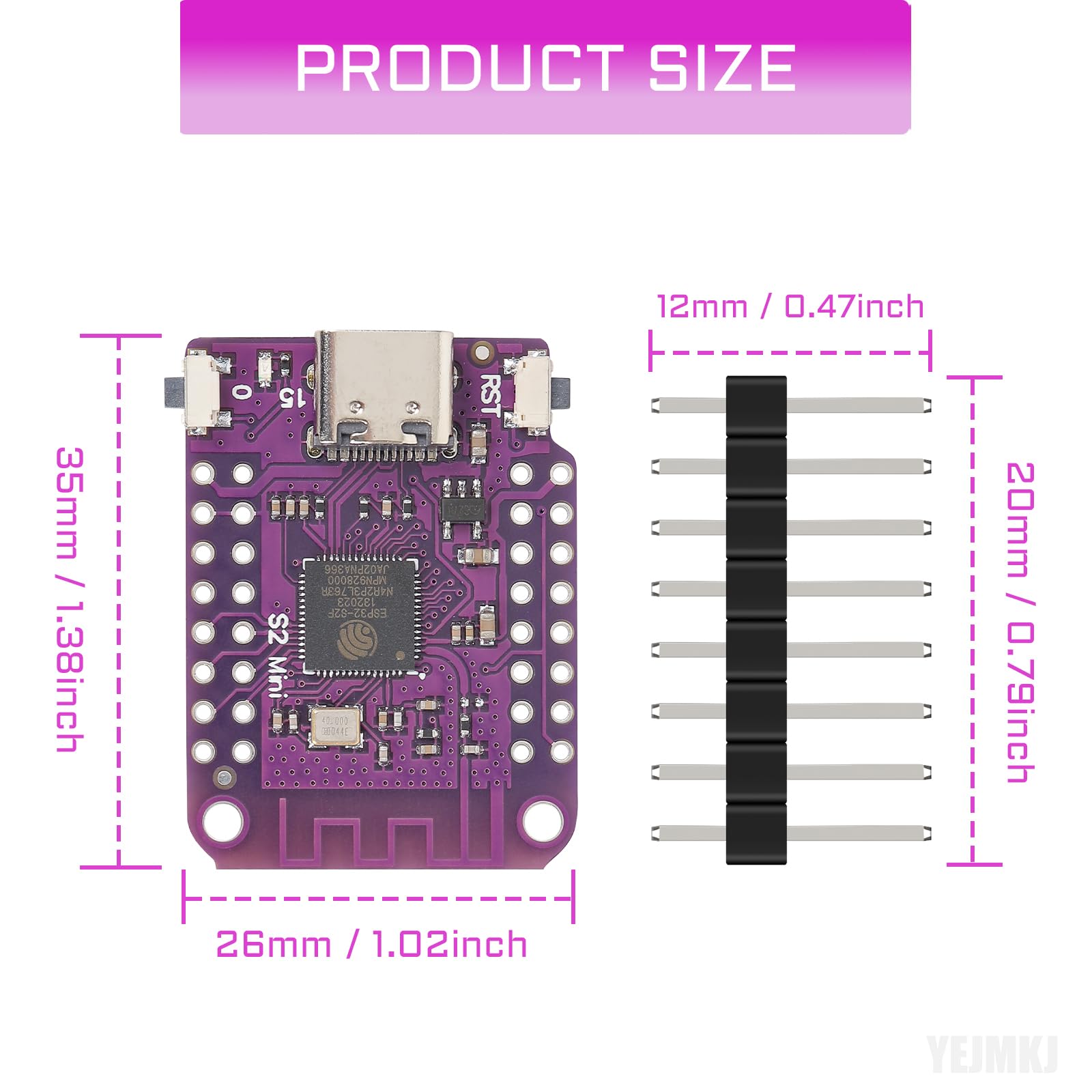 [Easy to Program]: The ESP32 S2 mini development board supports popular development tools and programming languages, making it convenient for developers of all levels to get started quickly and prototype their ideas with ease.