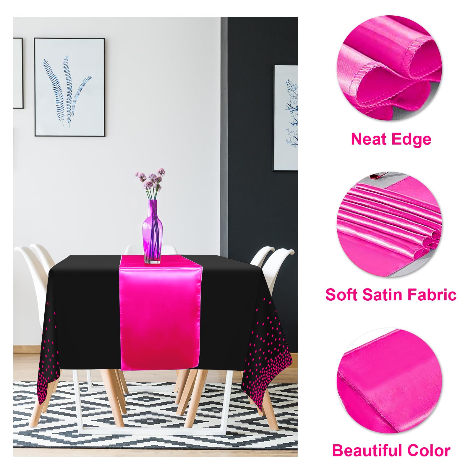 Classic design: the black hot pink rectangle table cloth is designed with the black colors background and printed with hot pink foil polka dot,the table runner is made of satin, silky and smooth, thick and durable, which is not easy to wrinkle or deform, which can add more charms to your dinner table