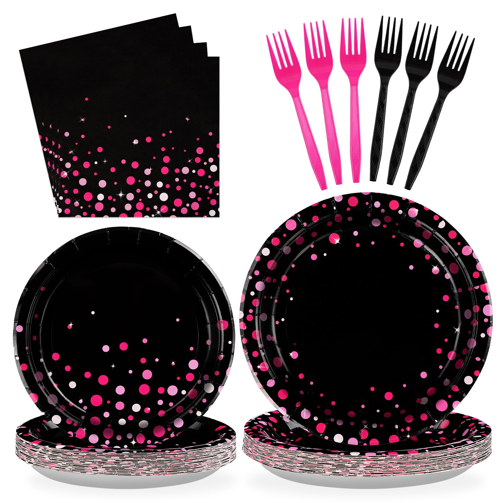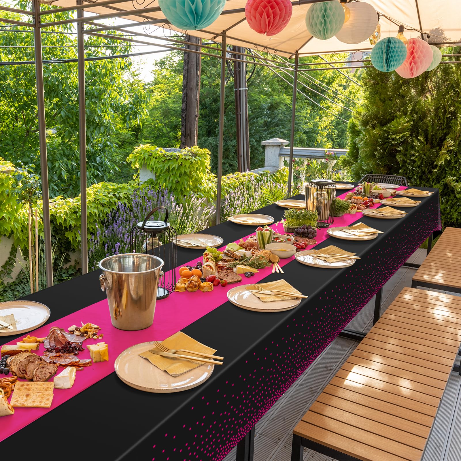 What you will get: the package includes 4 pcs black and hot pink confetti dot plastic tablecloth and 4 pcs hot pink satin table runner, specific color as the picture shown, nice combination for you to use in daily life or important occasions enhancing the atmosphere for your event.