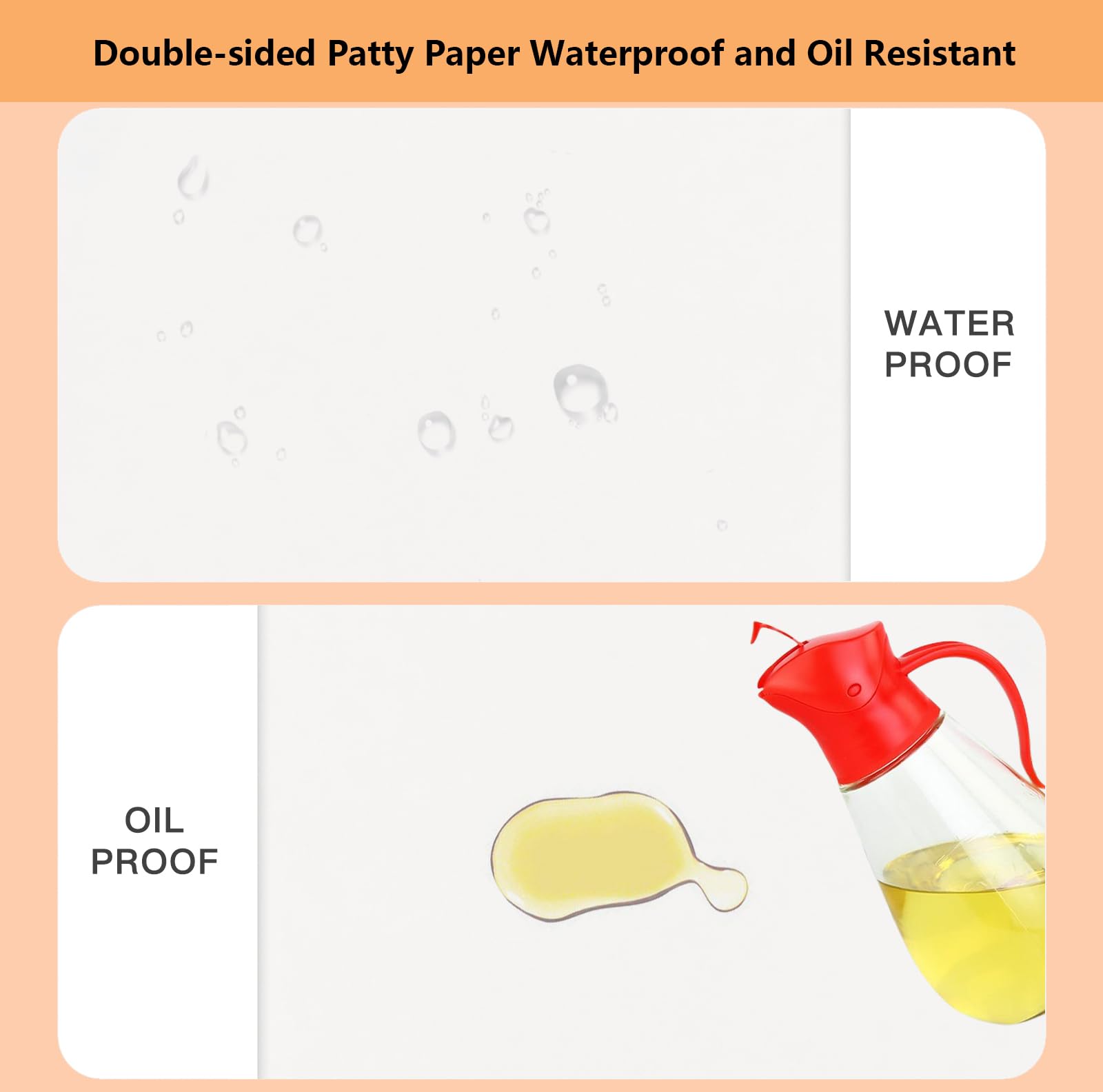 Safety & Health: Unbleached meat patty paper is made of natural wood pulp, completely fluorescent free, and double-sided silicone coating is waterproof and oil resistant, bringing you a healthy and safe diet.