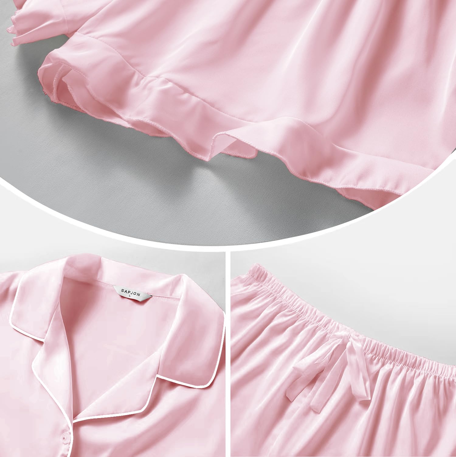 【High Quality Material】SAPJON's womens silk pajama sets is made of unique satin fabric, which is very soft, lightweight, and comfortable. The comfort is close to the touch of mulberry silk. Our satin pajamas women bring you more breathable and skin-friendly feeling.