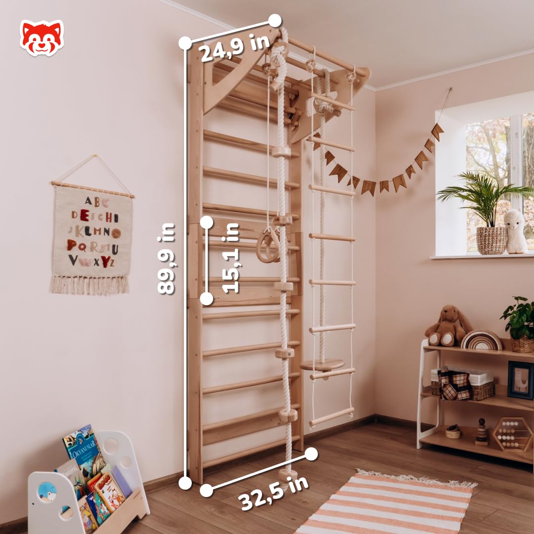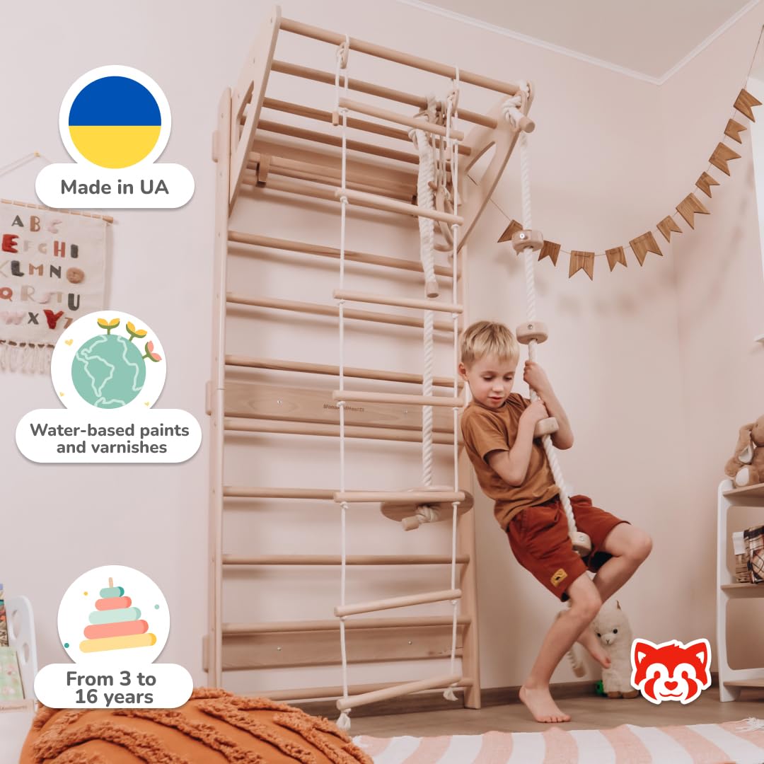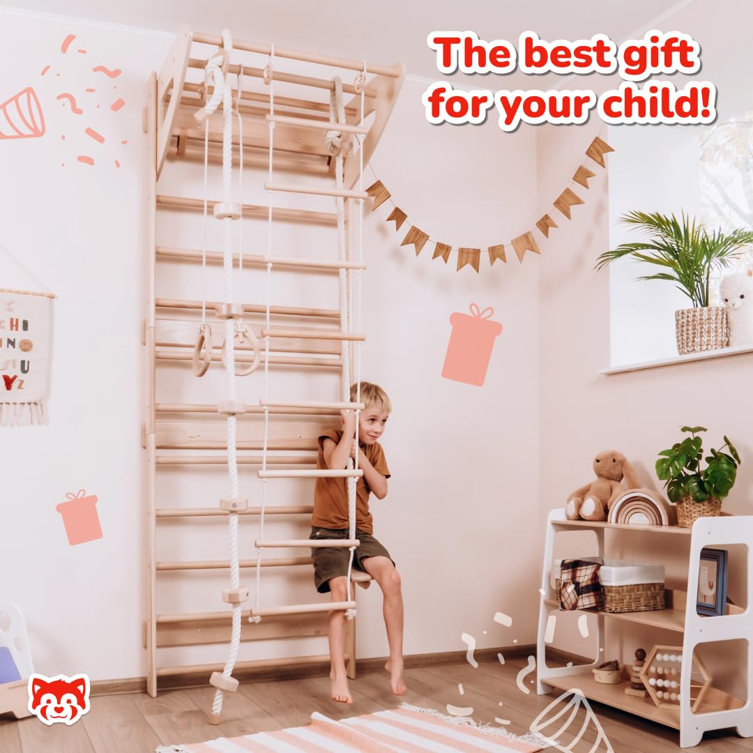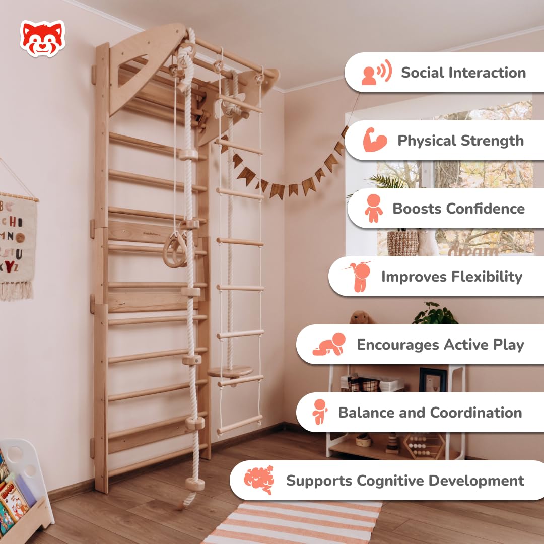 Versatile & Engaging Playset – Includes a 3-part Swedish Wall, Gymnastic Rings, Rope Swing, Climbing Rope with Wooden Spheres, and Rope Ladder, offering endless play opportunities.