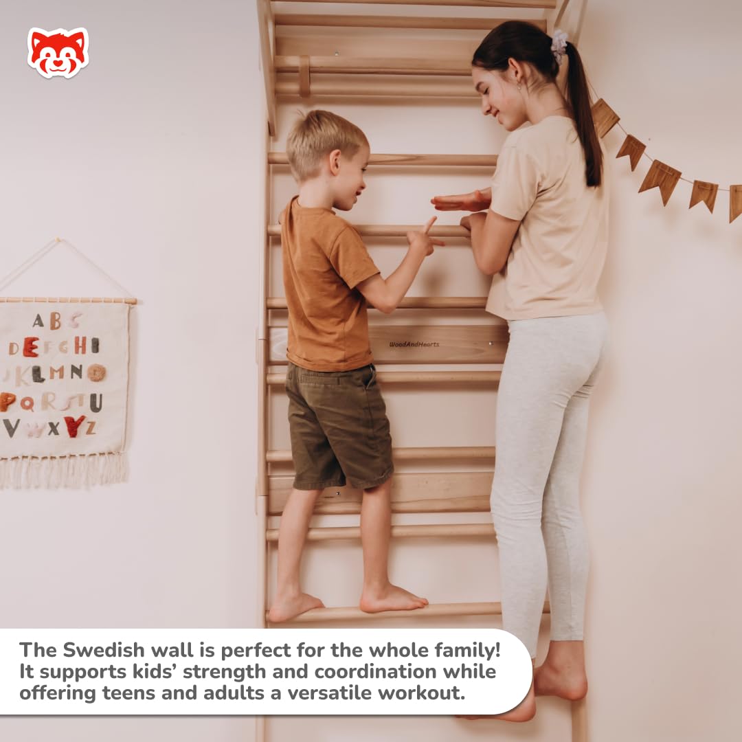 Strong & Reliable Construction – With a weight capacity of up to 60 kg (132 lbs), this sturdy Swedish Ladder wall gym ensures safe and long-lasting playtime for your little ones.