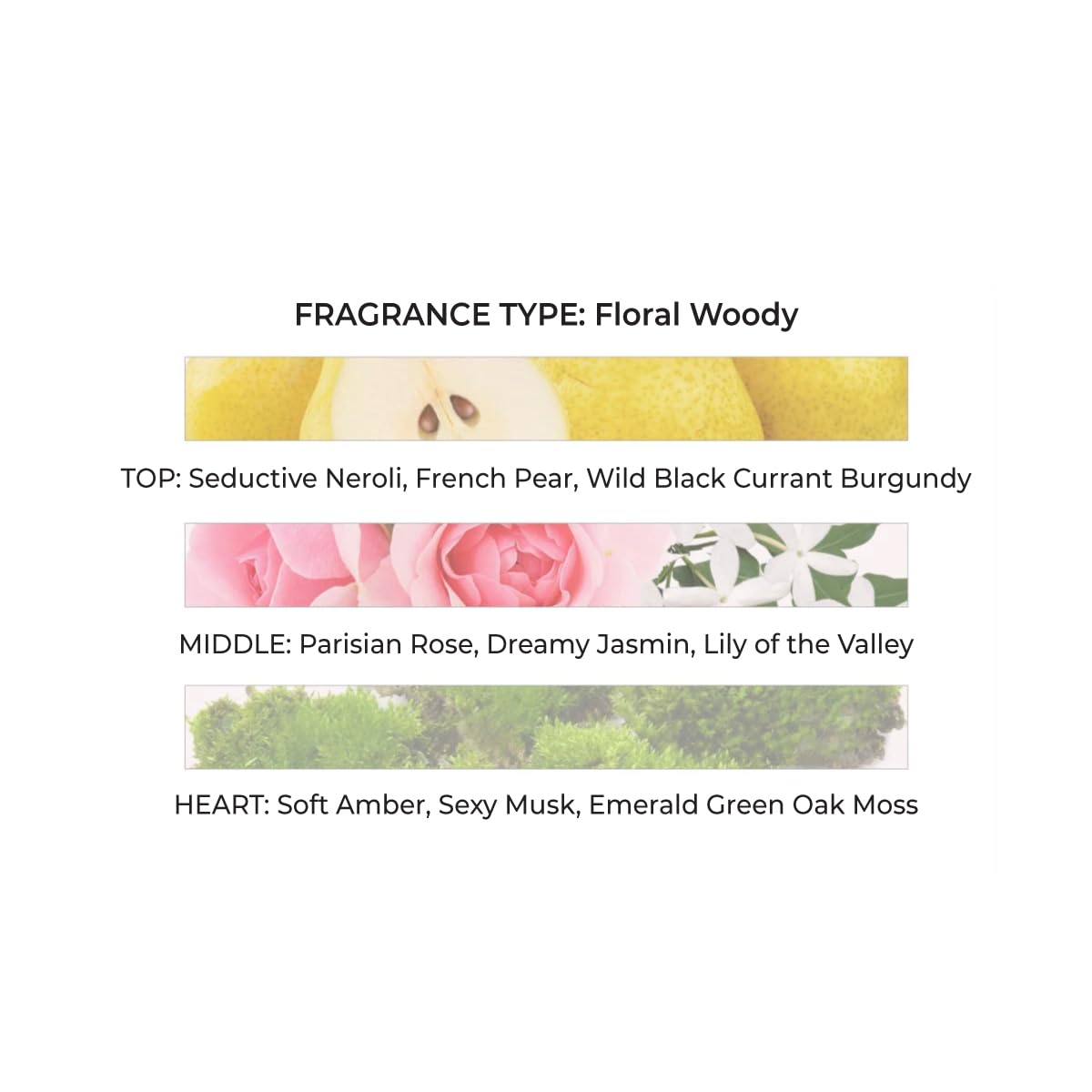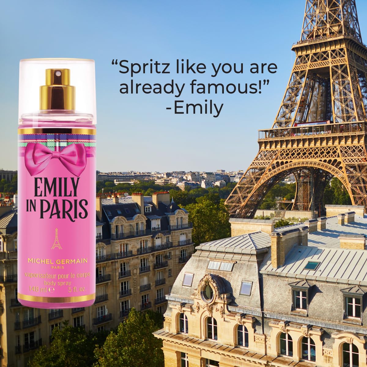 βSpritz like you are already famous!β - Emily Seduction, romance, femininity. Paris style. Seductive Neroli dances with sparkling, joyful French Pear swirled with wild Black Currant Burgundy. A romantic Parisian Rose and heady Jasmin bouquet entrance with feminine soft amber and dreamy Lily of the Valley for a delicious seduction that is pure femininity, Paris style. Fragrance Type: Floral Woody TOP: Seductive Neroli, French Pear, Wild Black Currant Burgundy MIDDLE: Parisian Rose, Dreamy Jasmin, Lily of the Valley HEART: Soft Amber, Sexy Musk, Emerald Green Oak Moss